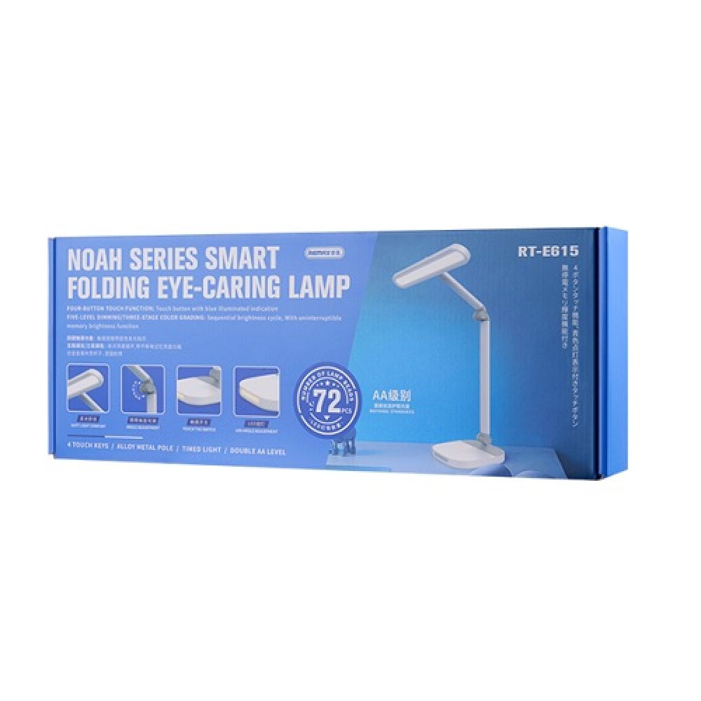 Настільна лампа Remax RT-E615 USB - це сучасний, практичний пристрій, який стане відмінною незамінною функціональною деталлю спальні, дитячої або робочого кабінету. Аксесуар виділяється привабливим дизайном та детально продуманою конструкцією. Для його виготовлення використовуються міцні матеріали та високоякісні електронні компоненти, що гарантує тривалий термін служби. Конструкція лампи складається зі стійкої основи та ніжки зі штангою на якій закріплений освітлювальний елемент. Шарнірні з'єднання в 3 місцях дають змогу компактно скласти її для зберігання або транспортування, а також налаштувати кут освітлення для максимального комфорту. На передній грані її основи розміщена додаткова LED панель, яка відіграє роль нічника. На її верхній панелі розміщені сенсорні кнопки для ввімкнення лампи та нічника, налаштування освітлення та керування функцією таймера. Лампу оснащено 72 світлодіодами, які випромінюють безпечне світло з непомітним мерехтінням без синього світіння, що зменшить навантаження на очі під час тривалого читання або письма. Вона може працювати в 1 з 3 режимів кольорової температури в діапазоні 3000-5000K та на 1 з 5 рівнів яскравості. Для її під'єднання до мережі є роз'єм Type-C і відповідний USB-кабель, який входить до комплекту.