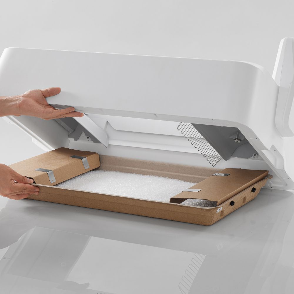 Інноваційна система двостороннього очищення та одноразовий лоток із захисним покриттям дозволяють до 30 днів обходитися без прибирання, а кристалічний наповнювач і вбудований дезодоратор ефективно поглинають вологу та нейтралізують запахи. Чотири сенсори контролюють присутність тварини, зупиняючи роботу при необхідності, а низький вхід і відкрита конструкція забезпечують комфорт для котів будь-якого розміру.