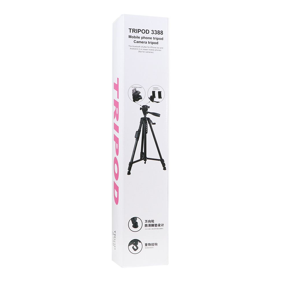 Штатив 3388 1.4м Remote - это профессиональный трипод, который поможет повысить качество съемки фото и видео на камеру или смартфон, а также может использоваться для установки другого оборудования, например, отражателей и ламп. Исключительная надежность и практичная конструкция данного устройства гарантирует полную безопасность зафиксированных на нем устройств и предоставит возможность легко регулировать их высоту, поворот и угол наклона. В полностью сложенном виде его длина составляет около 0.5м, что в сочетании с небольшим весом и удобной ручкой значительно упростит транспортировку. Центральная стойка и телескопические ножки с тремя секциями изготовлены из необычайно прочного алюминиевого сплава. Ножки оснащены подвижными прорезиненными накладками и фиксаторами для предотвращения складывания их секций. На одной из ножек расположен слот для хранения комплектного пульта ДУ, предназначенного для удаленного управления камерой смартфона. Центральная стойка оснащена крюком для подвешивания дополнительного груза и выдвижной секцией, высота которой регулируется ручкой поворотного механизма с трещоткой. Высота штатива в полностью разложенном виде равна 1.4м. Его головка снабжена встроенным пузырьковым уровнем и съемной площадкой с резьбовым креплением, которая может фиксироваться как вертикально, так и горизонтально. С помощью удобной рукоятки головка с закрепленным на ней оборудованием может наклоняться вверх-вниз и плавно поворачиваться на все 360° вокруг своей оси. Кроме пульта, в комплект к штативу входит и универсальный держатель для смартфона.