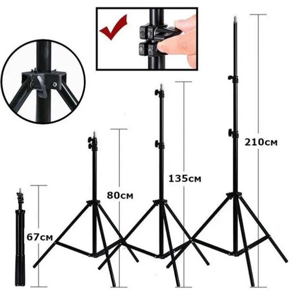 Штатив-Тренога - практичное, высококачественное устройство, которое в основном используется для фиксации на нем ламп, применяемых для фото и видео съемки. Данная модель выделяется своей исключительной надежностью. Аксессуар имеет, достаточно, компактные размеры и небольшой вес, что вместе со складной конструкцией и телескопической системой значительно облегчит его транспортировку. Устройство изготовлено из прочного сочетания пластика и металла. Модель гарантирует устойчивость на любой горизонтальной поверхности. Максимальная длина штатива - 200 см, в сложенном состоянии - 70 см.