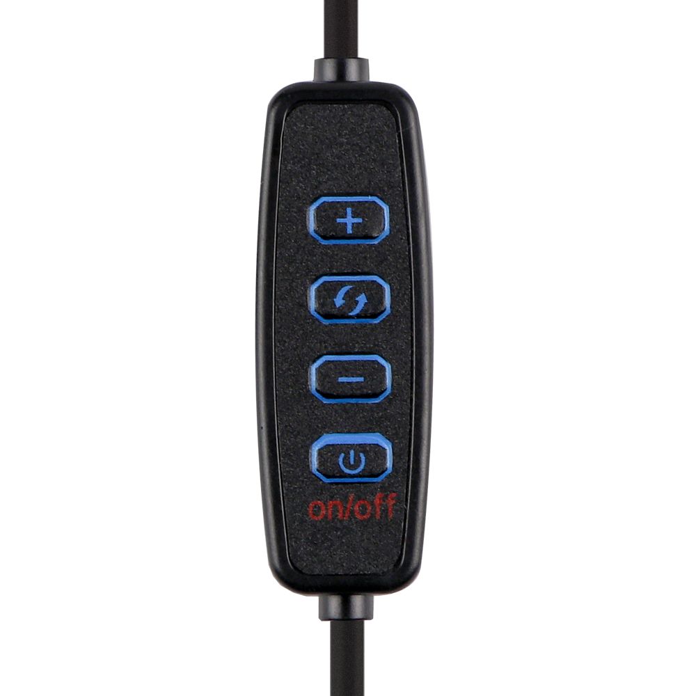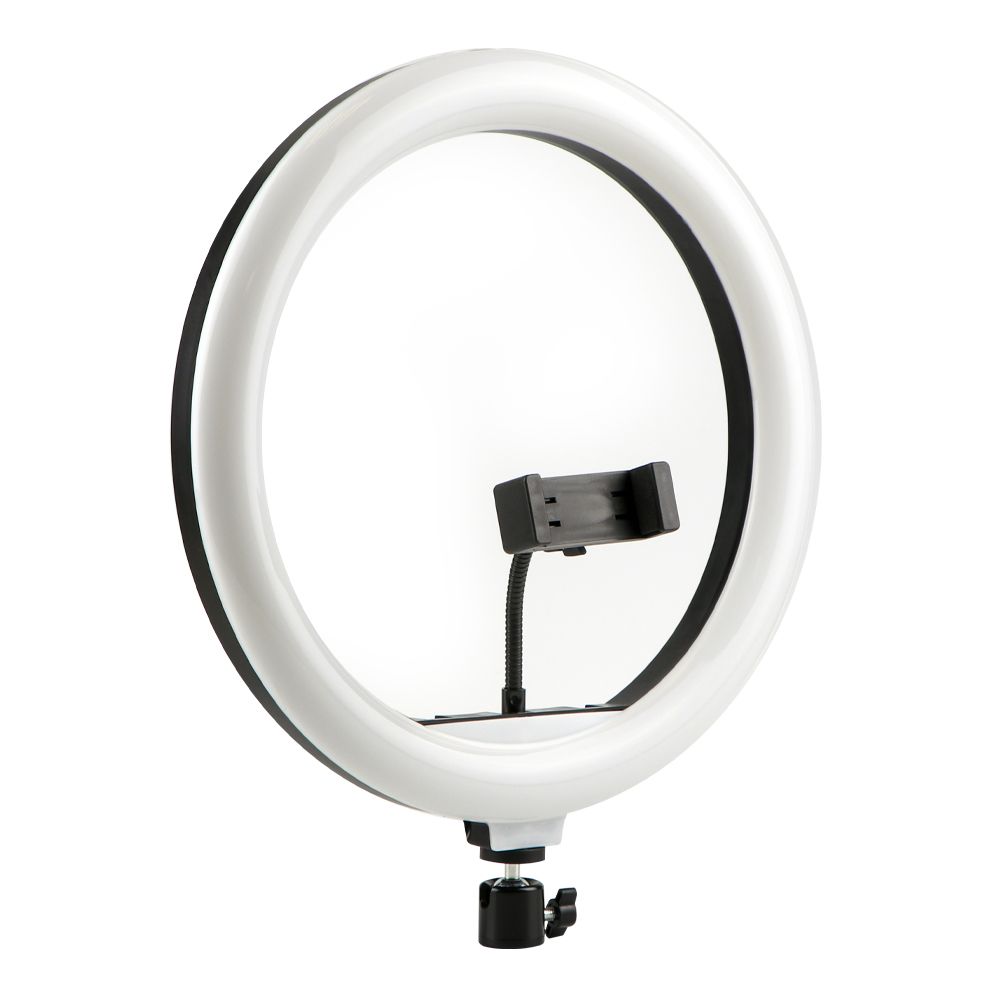 Лампа Fill Light 33cm - практичний і бюджетний варіант професійного кільцевого освітлення. Зовнішній діаметр кільця - 33 см, внутрішній - 24 см. Лампа має три режими типу освітлення (теплий, холодний і комбіноване світло), а також регулювання яскравості світла. Управління забезпечує вбудований в кабель пульт. За рахунок спеціального тримача в комплекті можна кріпити телефон до лампи. Кольорова температура лампи - 3200 - 5500 К. За допомогою шарнірного кріплення лампу можна встановлювати в необхідному положенні.