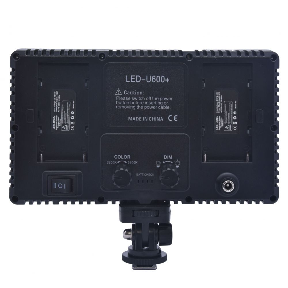 LED лампа Camera Light E-600 29cm, Black - качественный источник постоянного света, который идеально подойдет для создания оптимальных условий для съемки фото и видео и в студии, проведения прямых трансляций, видеоконференций, нанесения макияжа. Несмотря на свою большую мощность, составляющую 40Вт, и впечатляющую функциональность, данная модель обладает достаточно компактными размерами и небольшим и весом. Её надежно собранный корпус изготовлен из прочных материалов, что обеспечивает длительный срок службы, сохранность и удобство при транспортировке. Лампа оснащена шарнирным креплением, позволяющим установить ее на камеру, трипод или штатив и регулировать поворот и угол наклона. Панель с рассеивателем защищается четырьмя шторками, которые при необходимости могут использоваться как ограничители излучаемого по сторонам света. На задней панели устройства имеется два слота для батарей типа NP с механическими кнопками для их фиксации, кнопка включения, регуляторы яркости для цветовой температуры 3200 и 5500К, разъем DC IN для подключения кабеля сетевого адаптера. С лампой LED Camera Light 29cm (E-600) вы выбираете качественный и практичный продукт в ежедневном использовании.
