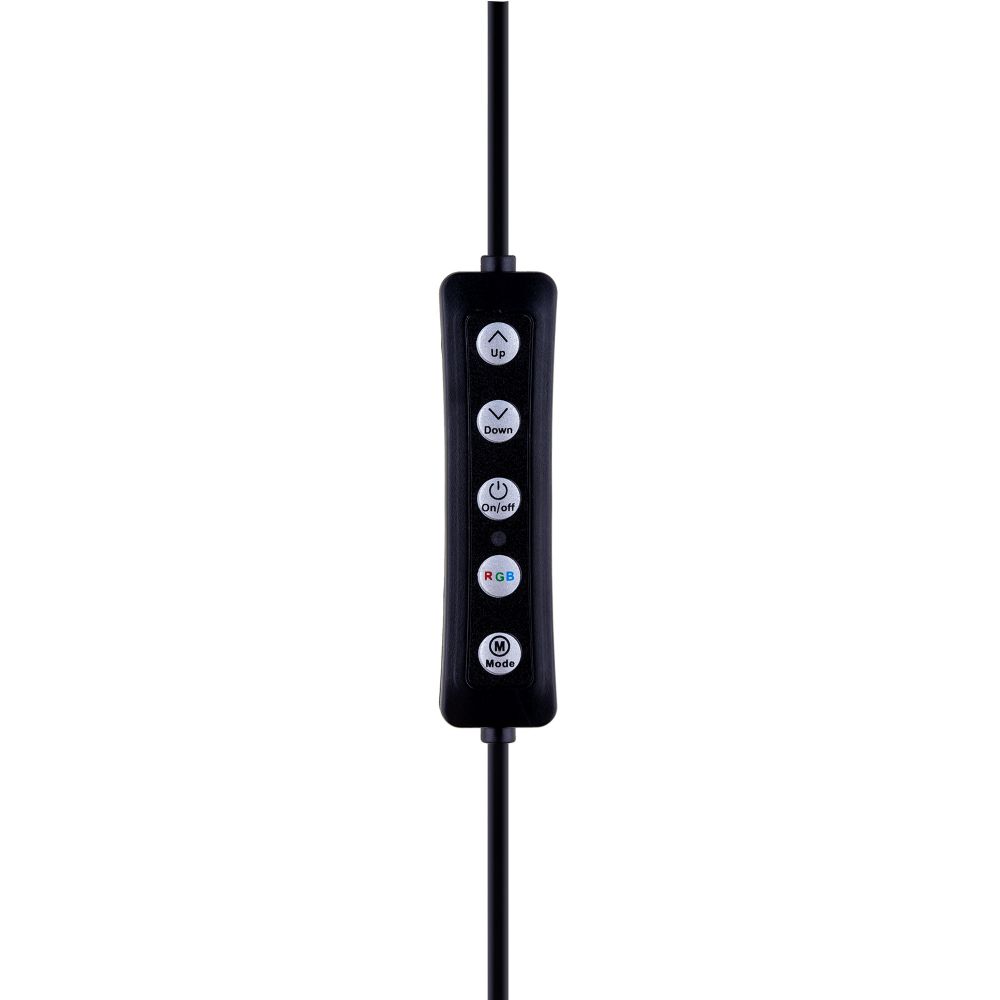 Модель оснащена встроенным кабелем, имеющим разъем USB для подключения к сети и пульт для управления яркостью и переключения между режимами.