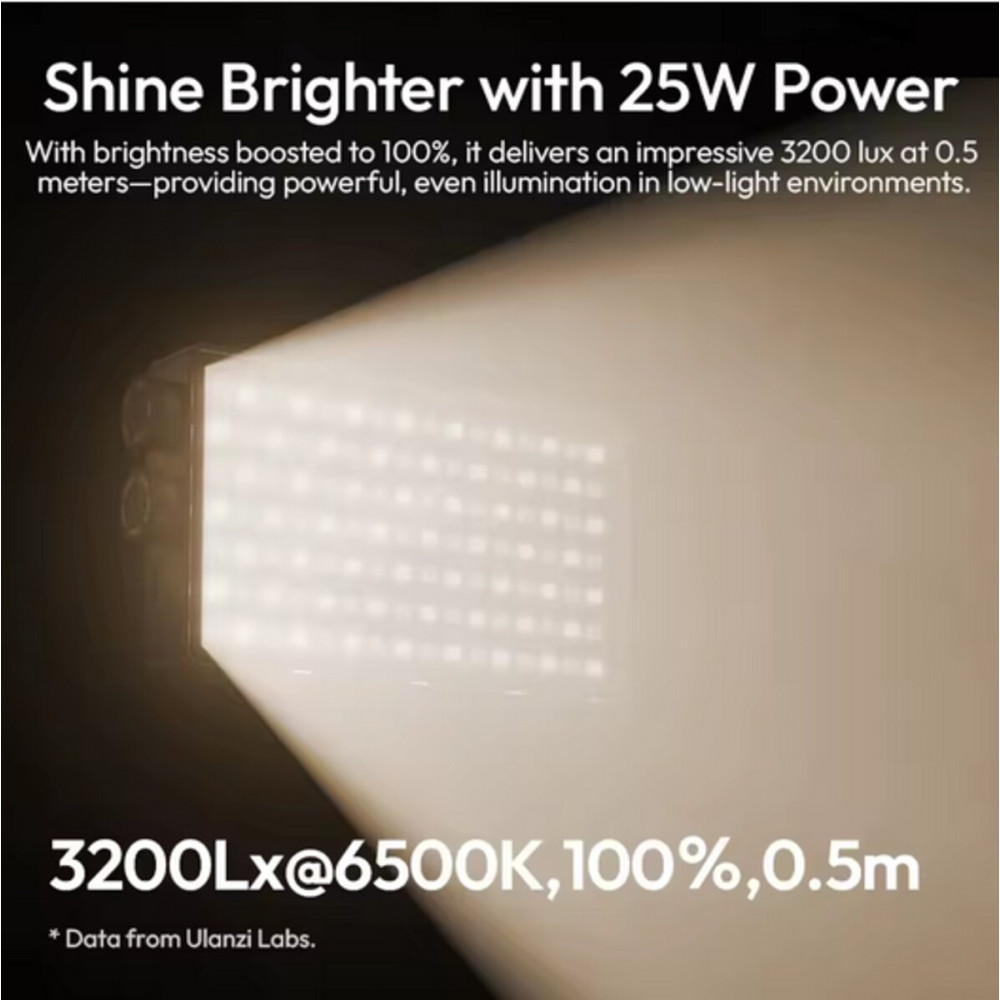 Ulanzi PL25 Panel Light (L156 PL25) — компактный и портативный светильник с дневной цветовой температурой 6500K и высоким индексом цветопередачи CRI >96. Подходит для работы с зеркальными и беззеркальными фотоаппаратами, видеокамерами и смартфонами.