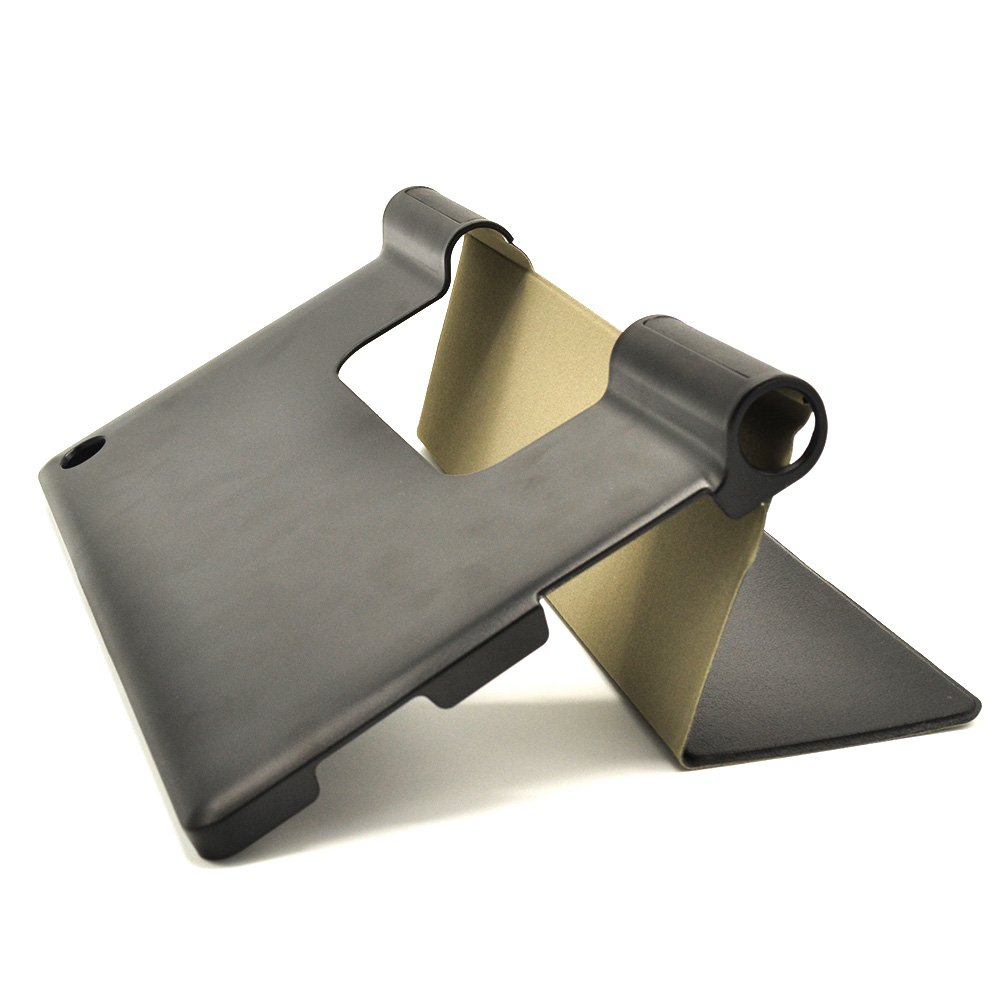 Чехол сделан из крепких материалов. Благодаря дизайнерскому решению крышку аксессуара можно трансформировать в подставку для получения максимально удобного угла обзора экрана планшета.