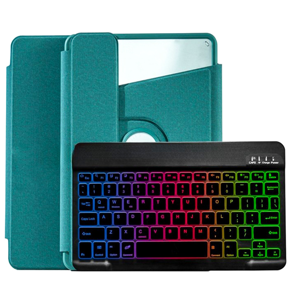 Чехол с Bluetooth-клавиатурой Glass Magnet Flip Cover 360 для Xiaomi Pad 6S Pro с RGB-подсветкой зелёный