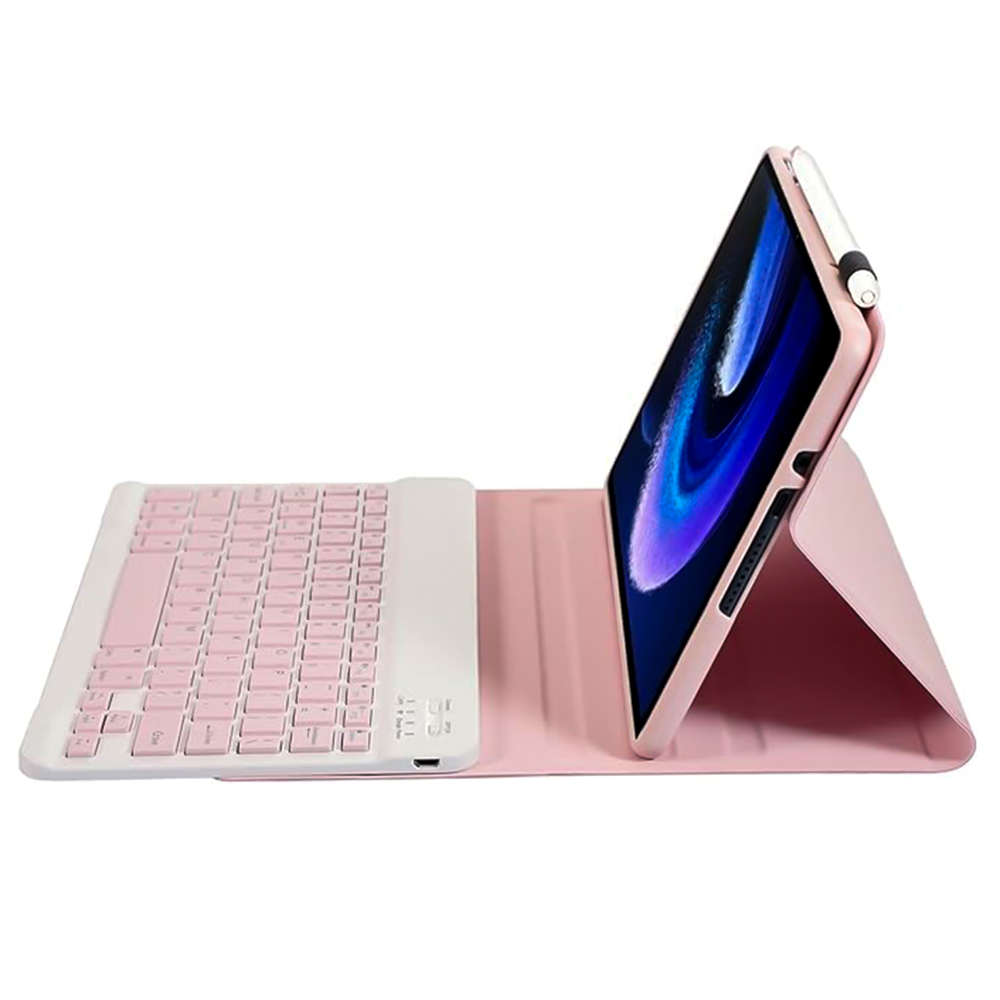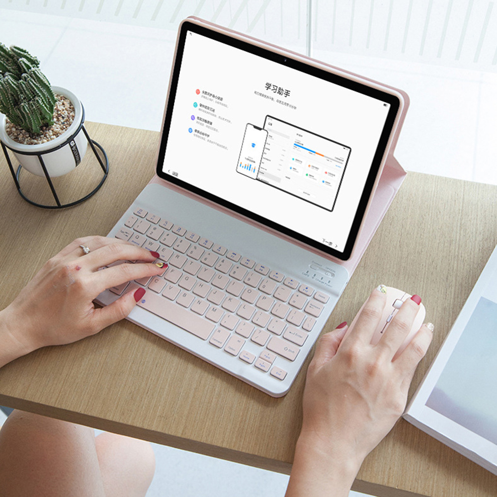 Клавиатура с магнитным креплением подключается по Bluetooth 3.0, обеспечивая стабильную работу на расстоянии до 10 метров. Она совместима не только с планшетами, но и с другими устройствами, такими как смартфоны и ПК. Возможность лёгкого отсоединения клавиатуры делает использование планшета гибким и удобным для любых задач.