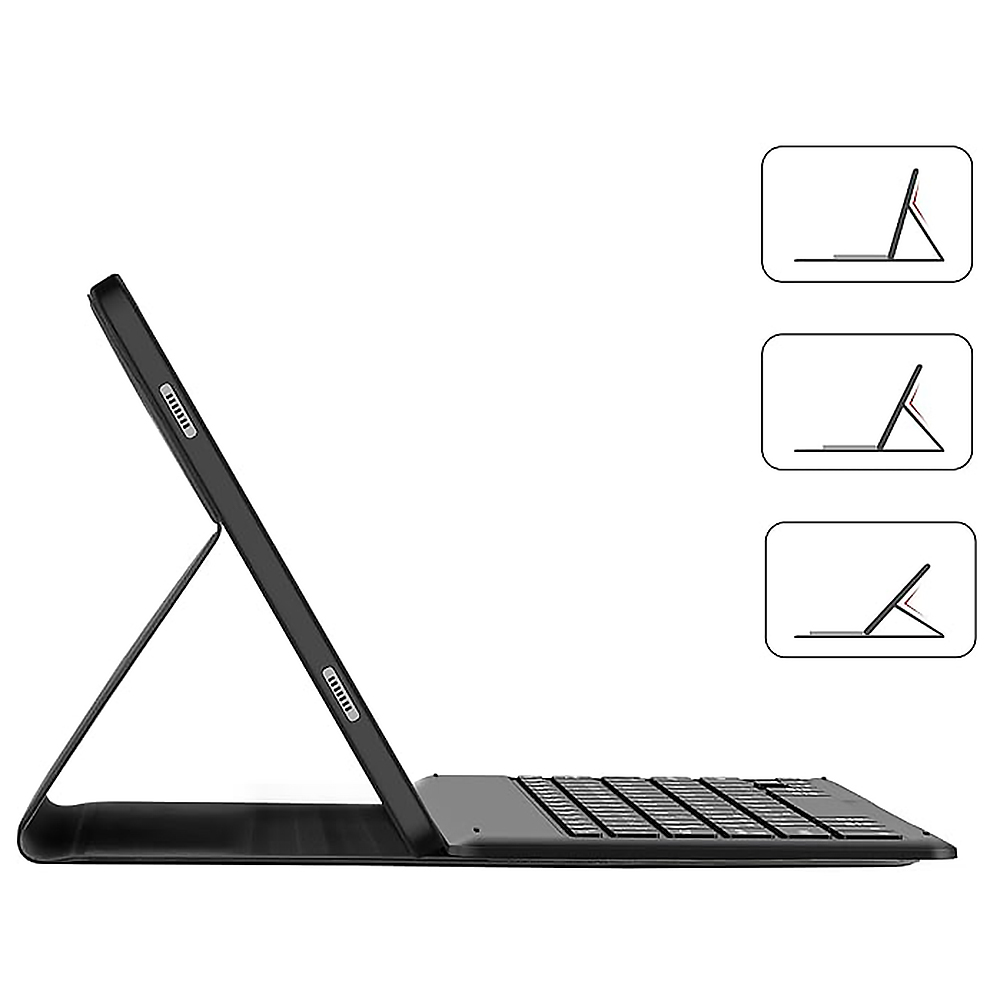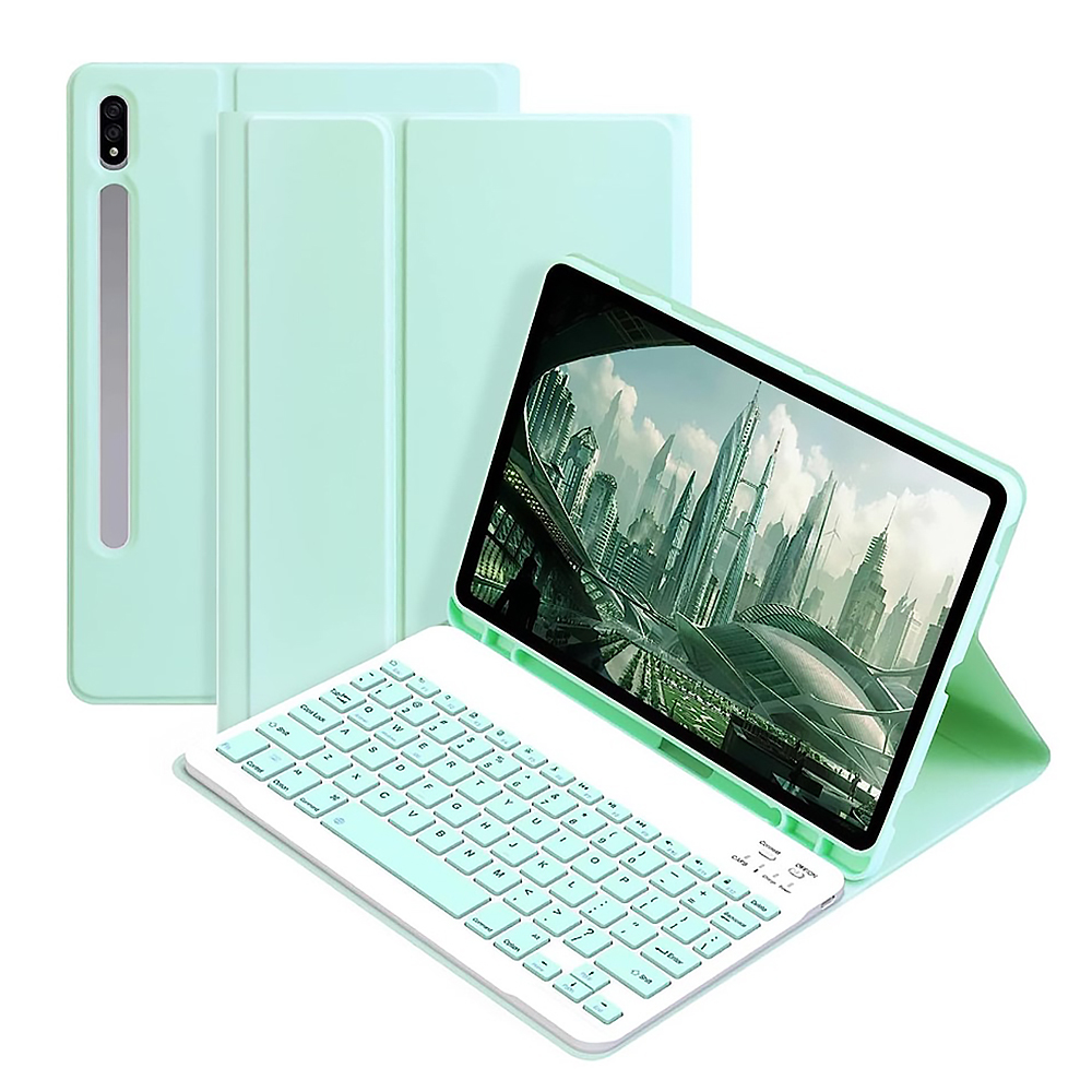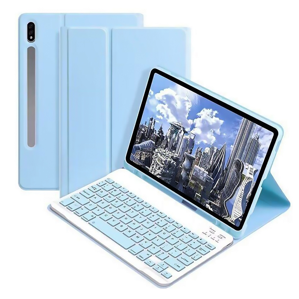 Главное преимущество модели – съемная беспроводная клавиатура с магнитным креплением. Она надежно фиксируется на внутренней поверхности чехла, но при необходимости ее можно легко отсоединить. Клавиатура подключается через Bluetooth и обеспечивает стабильную работу на расстоянии до 10 метров, совместимой не только с планшетом, но и со смартфонами или ПК. Элегантный дизайн в сочетании с практичностью делает этот чехол незаменимым аксессуаром для тех, кто ценит стиль и мобильность.