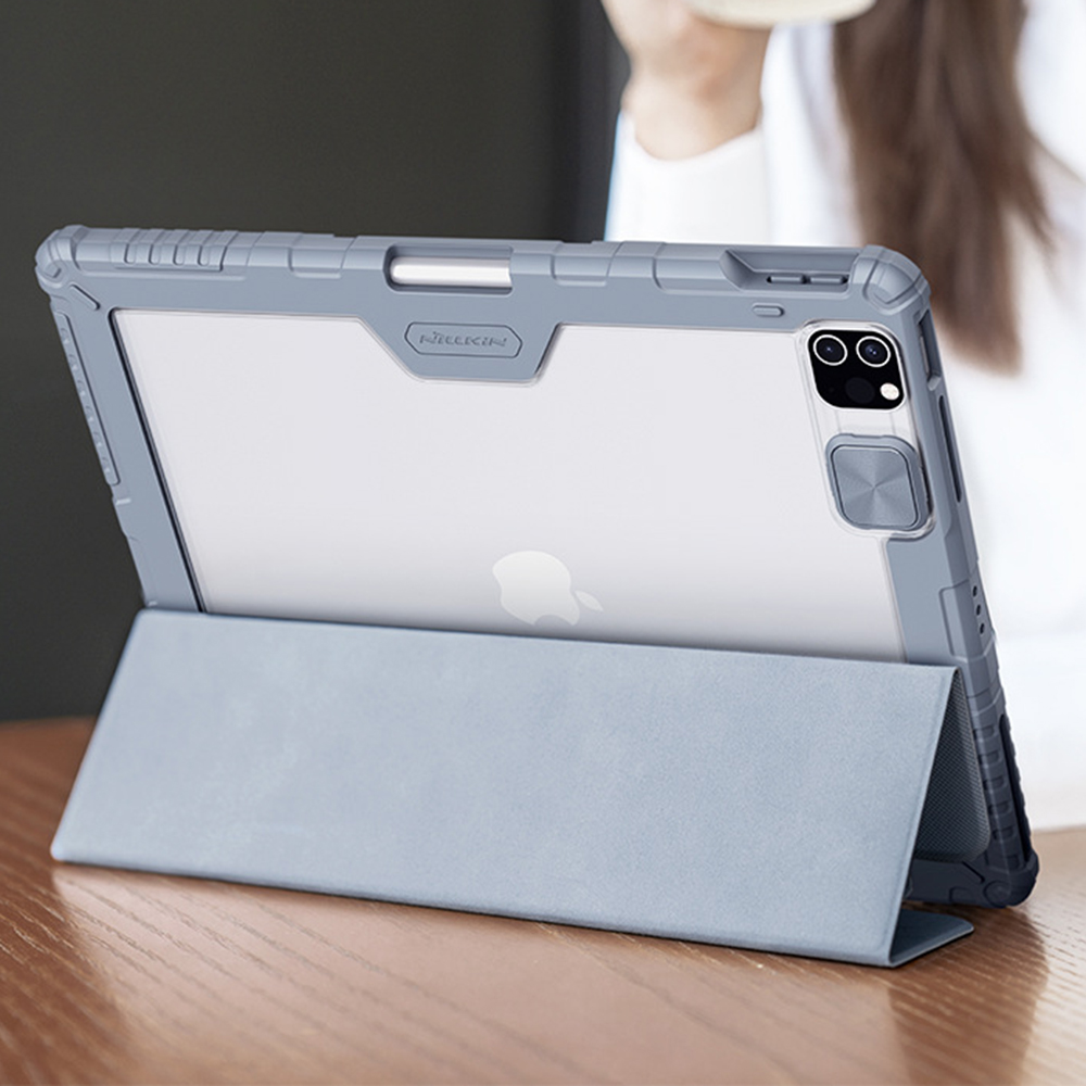 Чехол-книжка Nillkin Bumper Leather Case Pro для iPad Air 11 2024 / Air 11 2025​ — это стильный и продуманный аксессуар, сочетающий защиту и удобство в использовании. Его конструкция обеспечивает всестороннюю 360-градусную защиту планшета от царапин, ударов и повседневных повреждений. Особенным преимуществом является специальная защёлка для защиты камеры, которую можно легко отодвинуть, обеспечивая одновременно защиту и функциональность.