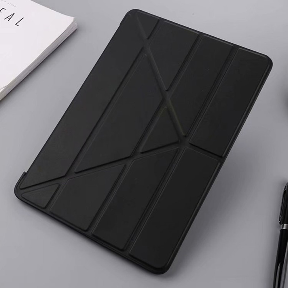 Дизайн чехла классический, особенностью является то, что передняя часть трансформируется в держатель горизонтального положения для комфортного просмотра фильмов, чтения и набора текста.