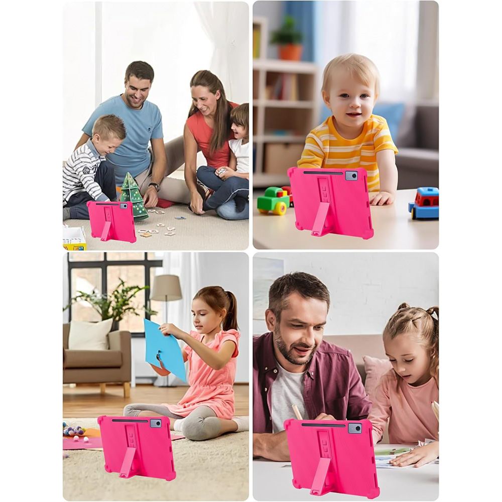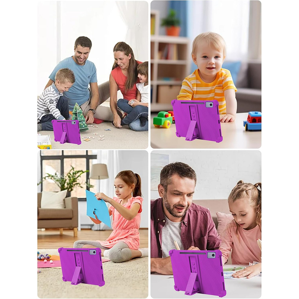 Встроенная подставка позволяет установить планшет под удобным углом для просмотра видео или занятий. Это делает чехол практичным выбором как для домашнего использования, так и для обучения.
