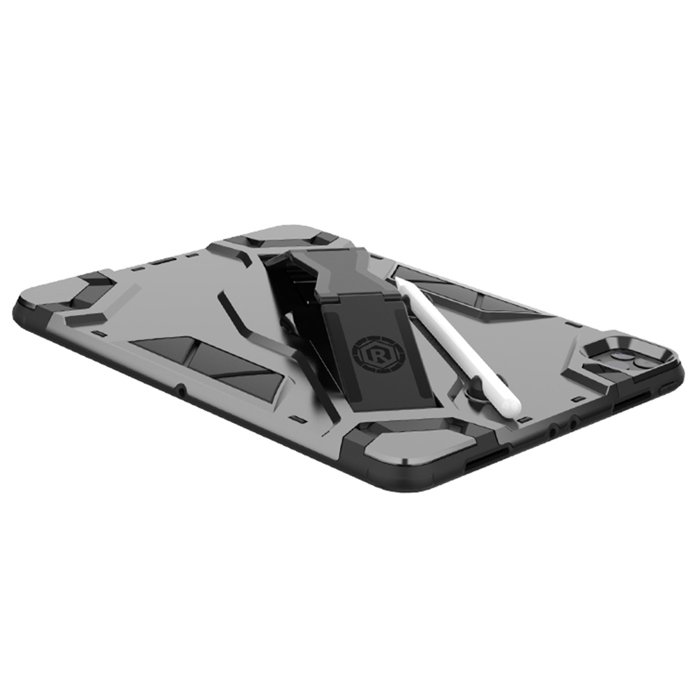 Противоударный чехол это лучший вариант защиты планшета от падений или других ударов, ведь его внутренняя часть изготовлена из термополиуретана, который плотно удерживает гаджет и дополнительно смягчает удар, а внешняя часть чехла - это прочный пластик, который и принимает основной удар на себя. Таким образом удачное сочетание в конструкции чехла этих двух материалов сохранит в целостности ваш гаджет. Противоударный чехол не скользит в руках, ведь имеет рельефную поверхность и вставки из ТПУ. На внешней стороне есть держатель, который просто раскладываеться и складываеться и является хорошим дополнением дизайна.