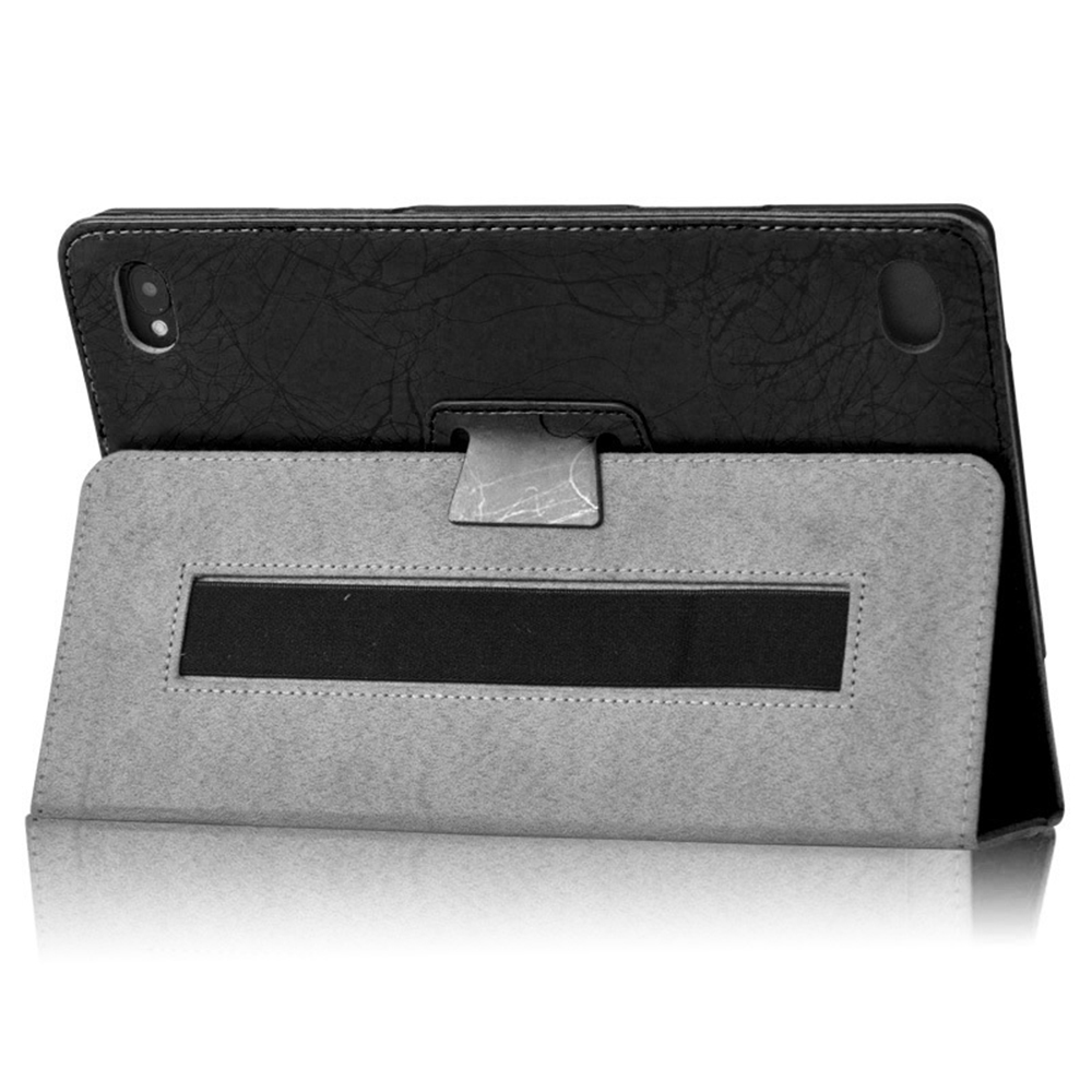 Изготовлен из экокожи приятной на ощупь, которую можно вытирать влажной салфеткой. Внутренняя сторона из силикона, которая не царапает экран планшета. Чехол-книжка крепко держится в руке и не ускользает, поэтому хорошо обеспечивает защиту планшета от падений и ударов. Его легко надевать и легко снимать.