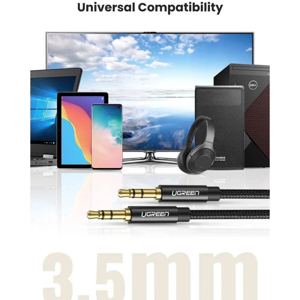 Аудиокабель UGREEN AV112 3.5mm Male to 3.5mm Male Cable Gold Plated Metal Case with Braid 1m (Black)(UGR-50361) позволяет легко подключить к вашему автомобилю любой из iPod, iPhone, iPad, смартфона, MP3-плеера или планшета, что подключен к 3,5-мм аудиопорту, к портативных беспроводных динамиков Bluetooth или домашней стереосистемы, совместимый с любыми цифровыми устройствами со стандартным аудиоразъемом 3,5 мм, таким как наушники Beats, iPhone, iPod, Samsung Galaxy, ноутбук, планшеты, MP3-плееры, телефоны, автомобильная или домашняя вспомогательная стереосистема, динамик и т.д.
