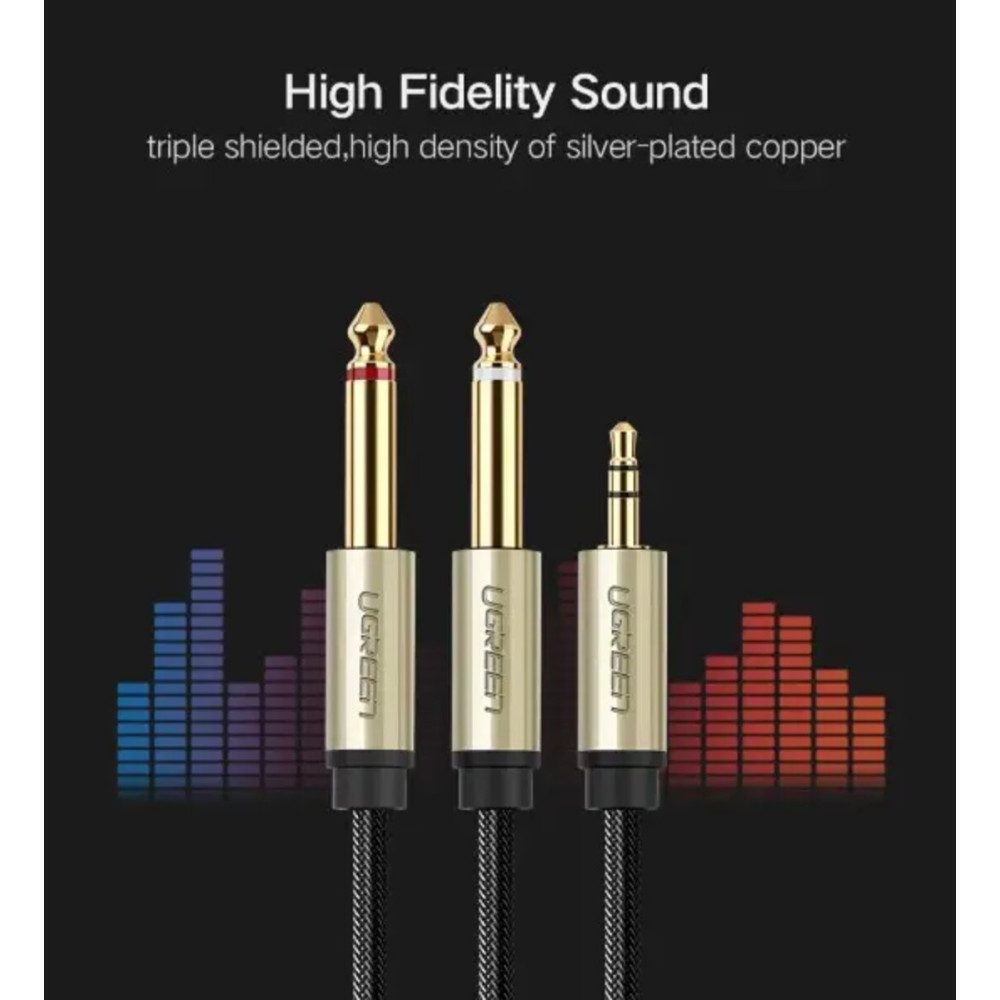 Стерео-кабель UGREEN AV126 3.5mm TRS to Dual 6.35mm TS Audio Cable 2m (Gray)(UGR-10615) обеспечивает высококачественное соединение между вашим ноутбуком или ПК с AV-ресивером, усилителем, микшером, стерео аудиосистемой Hi-Fi, домашним кинотеатром и т. д.