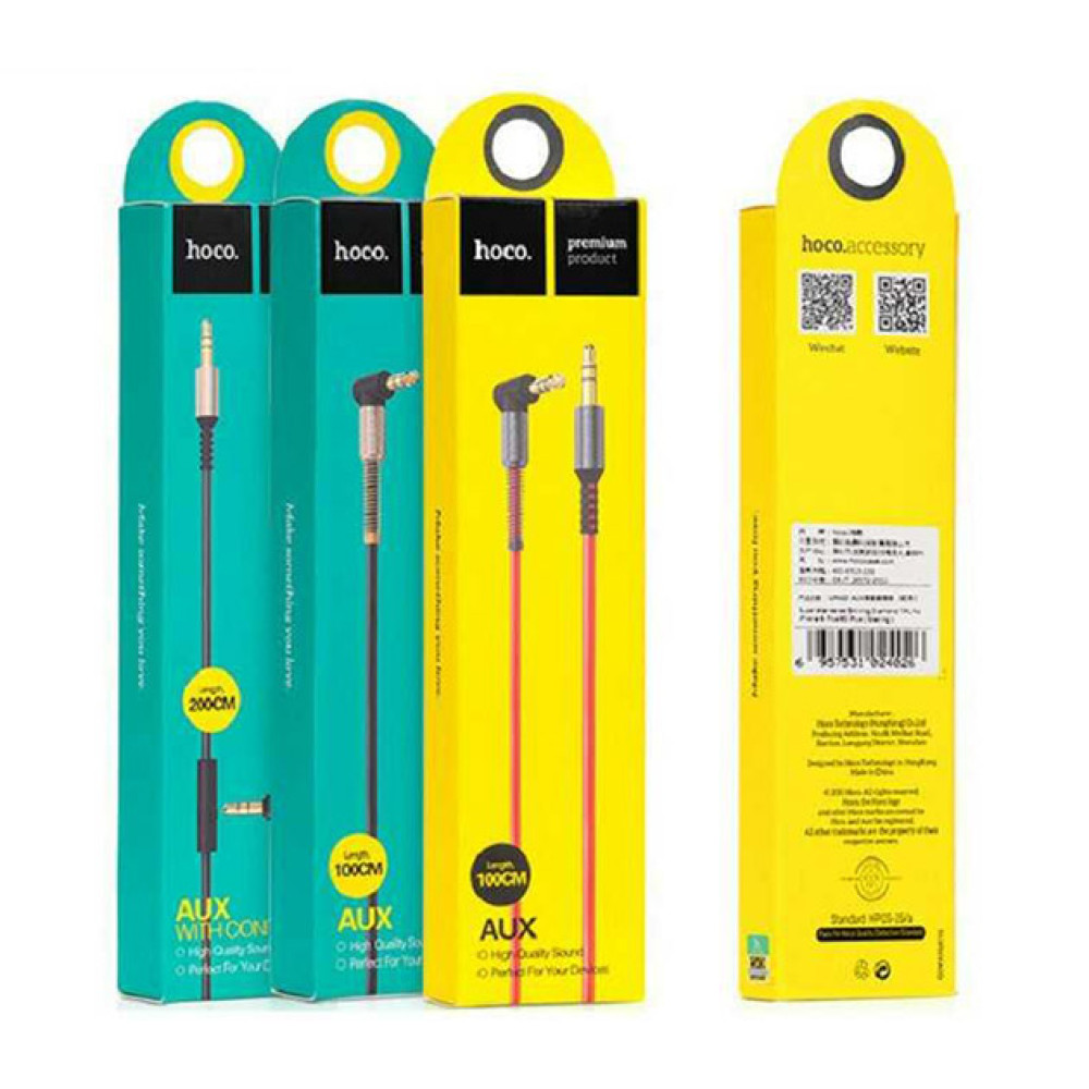 Кабель от фирмы Hoco позволяет подключить гаджеты через стереоканал к магнитоле автомобиля или другого устройства с разъемом AUX mini Jack 3.5mm.