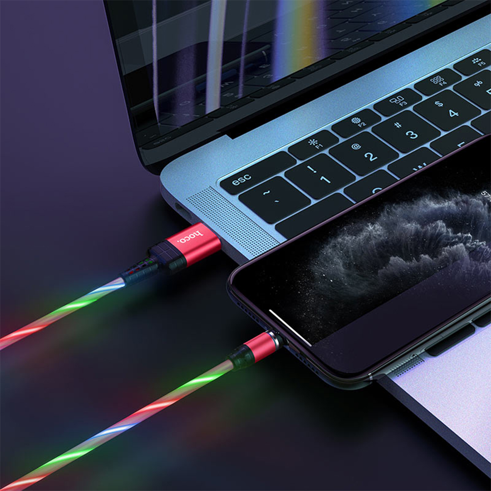 Data-кабель Hoco U90 Magnetic and RGB LED Sreamer USB - Lightning 2A, 1m