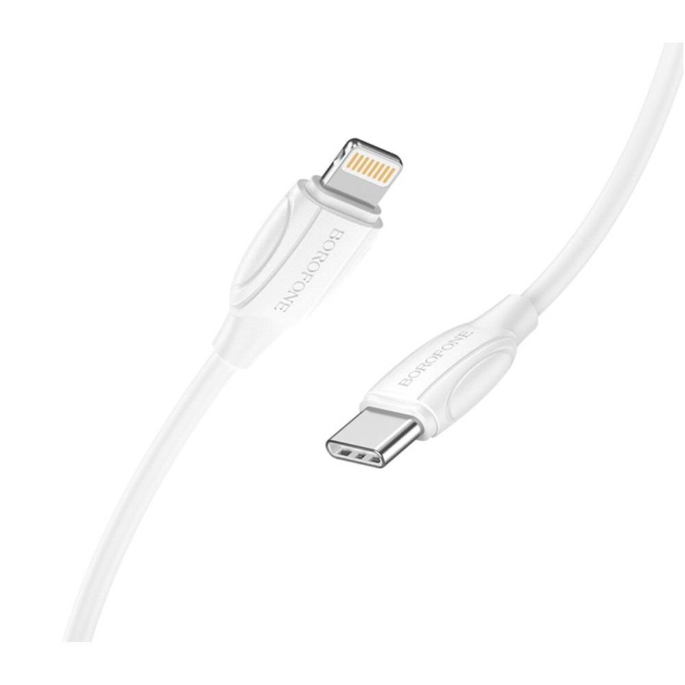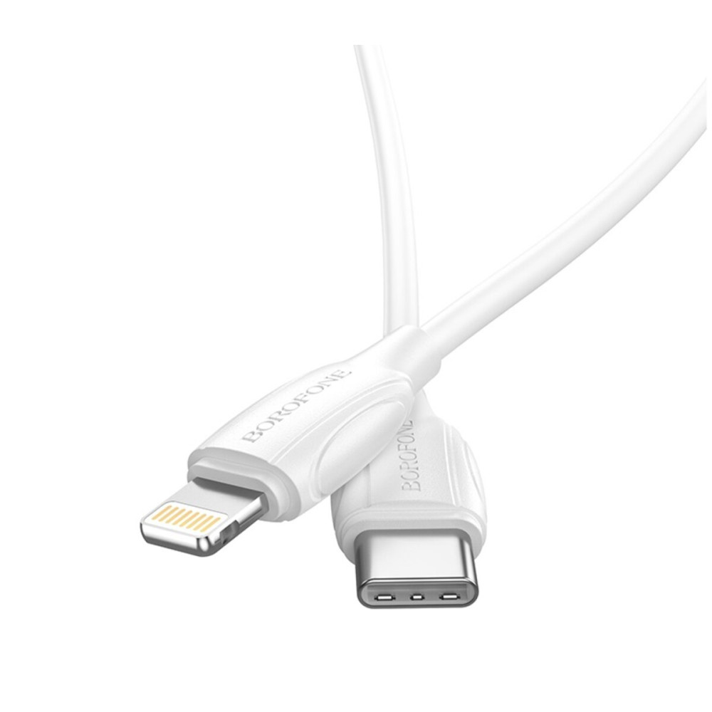 Кабель Borofone BX19 Double-speed в стильном дизайне, отличное решение для подзарядки ваших гаджетов. Корпуса коннекторов типа Type-C и Lightning имеют удобную форму и рельефную текстуру, предотвращающую скольжение пальцев, изготовленные из качественного пластика, места их соединения с кабелем дополнены защитой от изломов. Прочная оплетка выполнена из приятного на ощупь, достаточно эластичного, устойчивого к разрывам и растяжению материала, который убережет утолщенный медный сердечник кабеля от возможных повреждений. Длина кабеля составляет 2 м. Аксессуар способен производить ток силой до 3А и поддерживает функцию быстрой зарядки PD 20W.