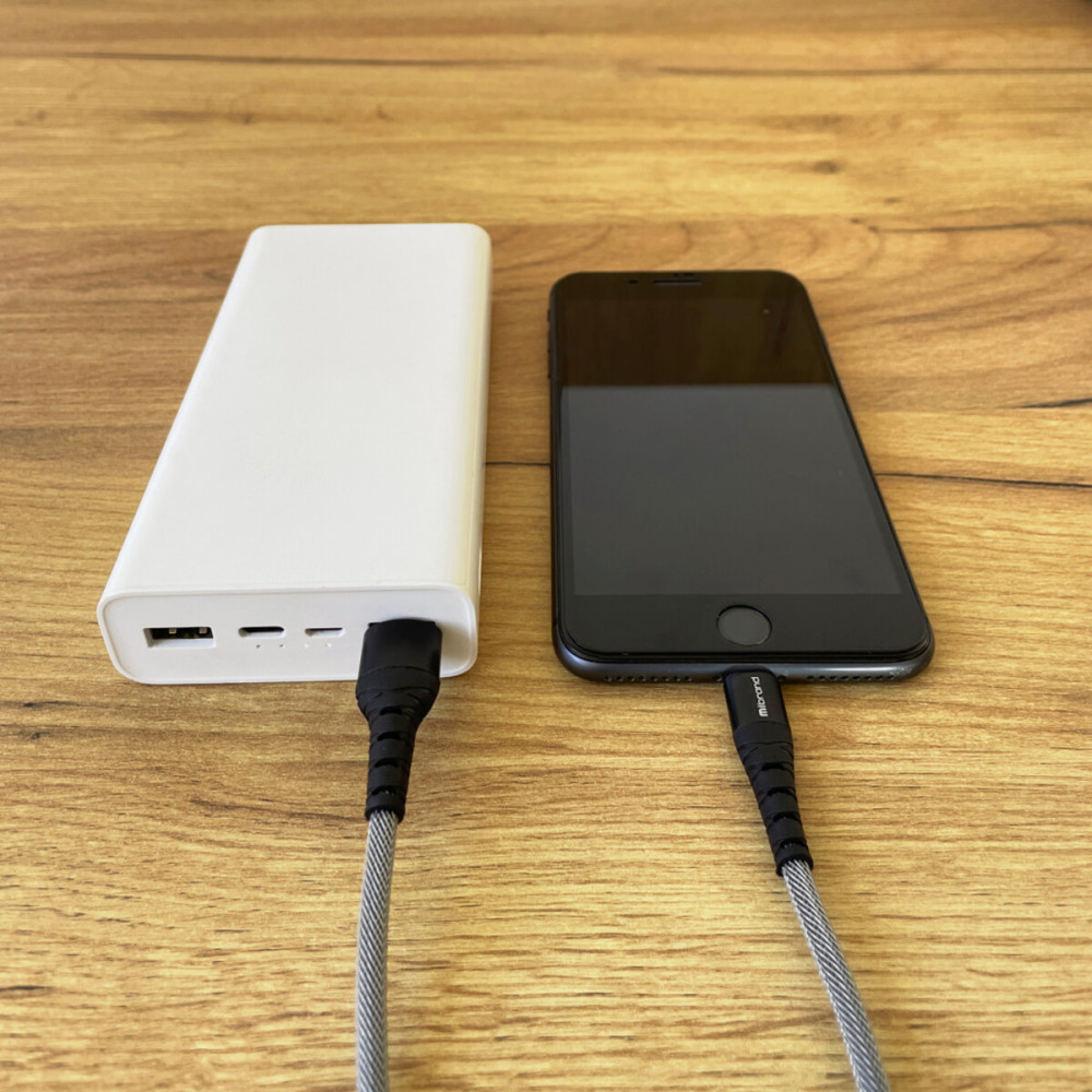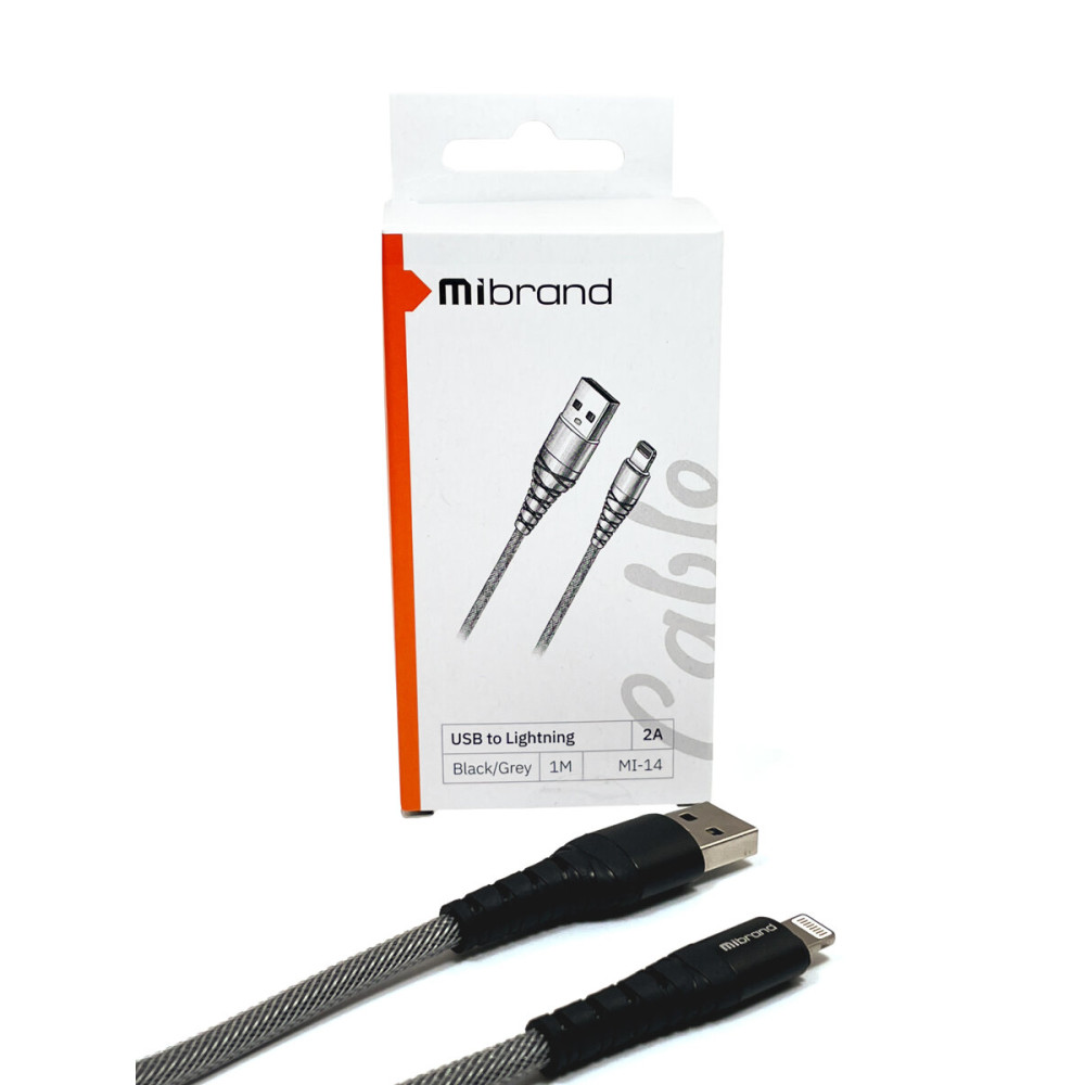 Кабель Mibrand MI-14 Fishing Net Charging Line USB для Lightning 2A 1m Black/Grey имеет защиту от перенапряжения для безопасности устройства. Длина — 100 см. Это компактный и удобный аксессуар, подходящий для стандартных задач, когда не требуется большей длины кабеля.
