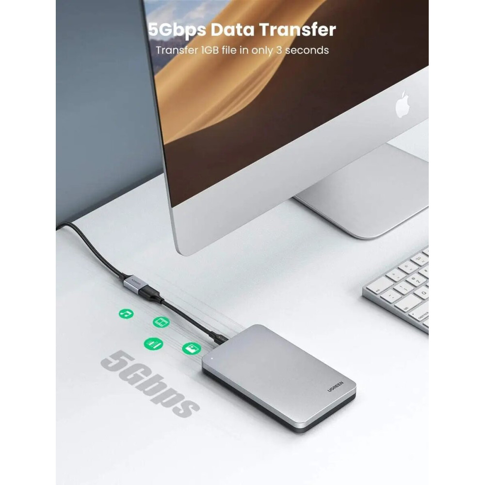 Подовжувач USB UGREEN забезпечує високу швидкість передачі даних до 5 Гбіт/с, що на 10 разів швидше, ніж USB 2.0 (480 Мбіт/с). Він може передавати фільми або файли у форматі HD за лічені секунди, а також зворотно сумісний з USB 2.0, 1.1 та 1.0.