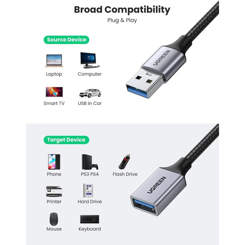 За допомогою цього подовжувача UGREEN US115 USB 3.0 Extension Cable Aluminium Case 0.5m (Black) (UGR-10494) можна розширити свій пристрій для зручного місця для підключення іншого USB-пристрою. Просто підключі та працюй, драйвери не потрібні. Ідеально підходить для перегляду відео на телевізорі з флеш-накопичувачем або жорсткого диска, що робить ваше повсюдне життя зручнішим за рахунок найвищої продуктивності.