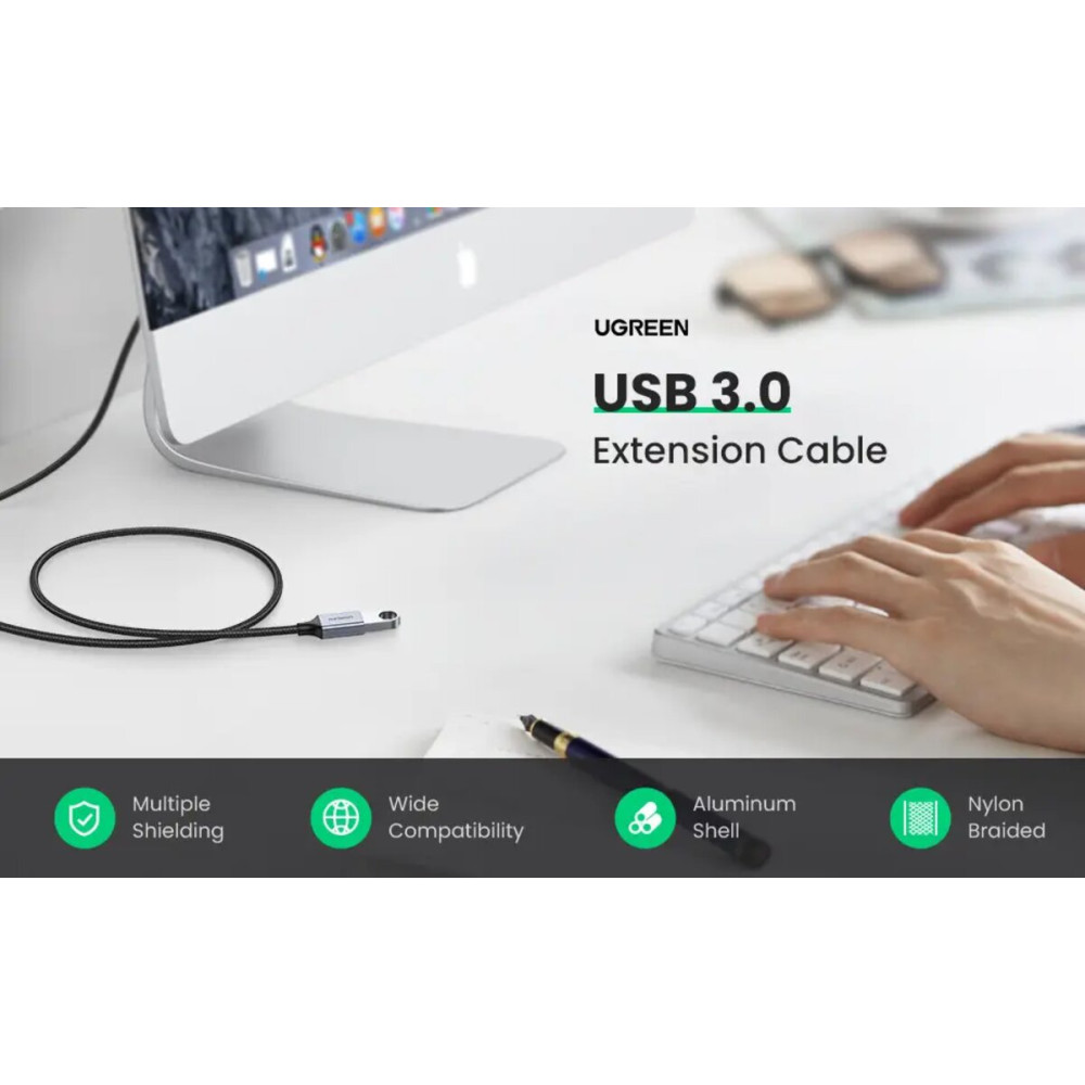 Удлинительный кабель UGREEN US115 USB 3.0 идеальной длины 1 м, с помощью которой вы можете расширить подключение USB к компьютеру, а также различные периферийные устройства USB, такие как концентраторы, принтеры, устройства для чтения карт, адаптеры Bluetooth и т.д. -накопители, сканеры, жесткие диски, мышь, клавиатура без гистерезы или потери данных.