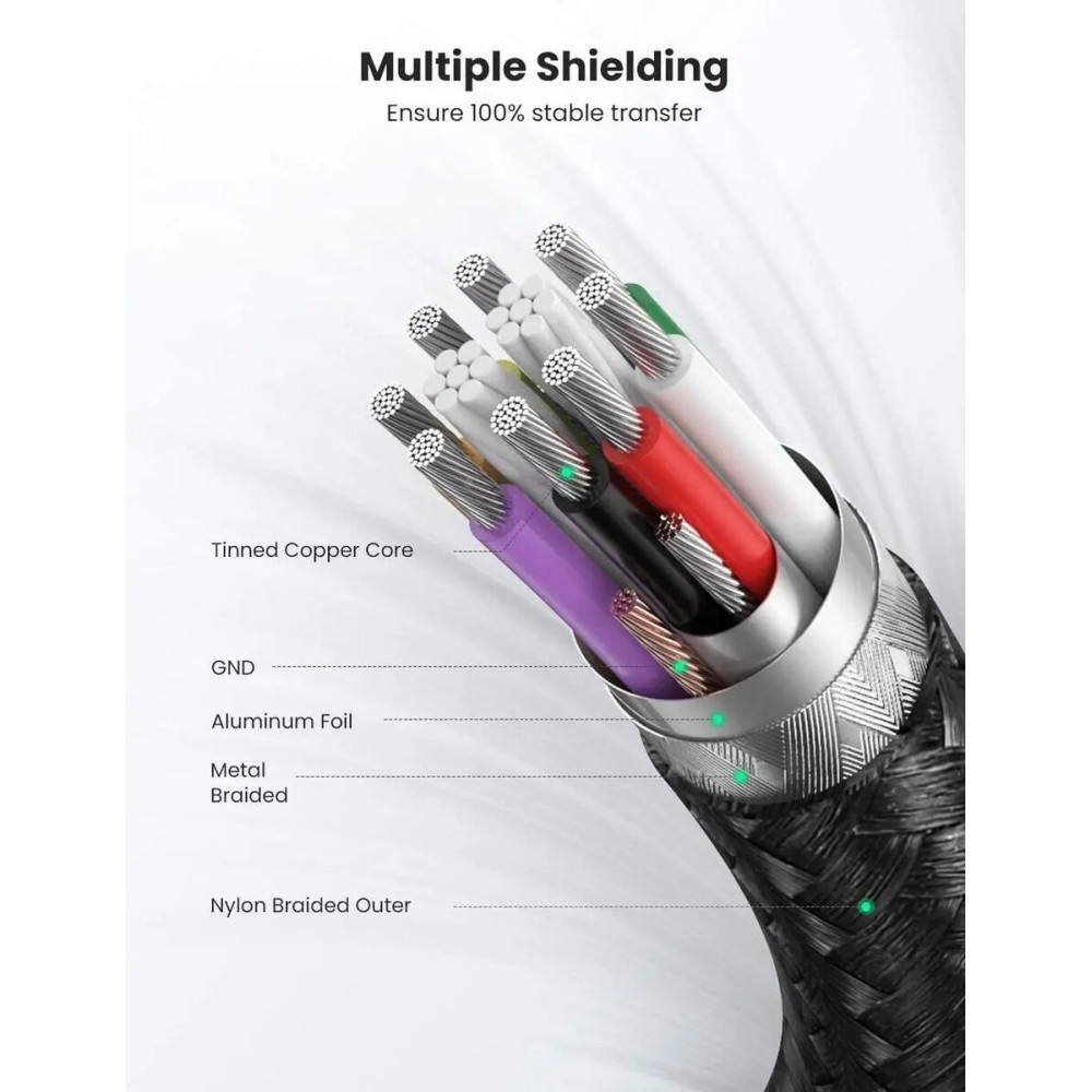 Гибкий нейлоновый плетеный материал и износостойкая алюминиевая оболочка делают кабель более устойчивым для 10000 изгибов, не беспокоясь о путанице и прочнее для более длительного срока службы.