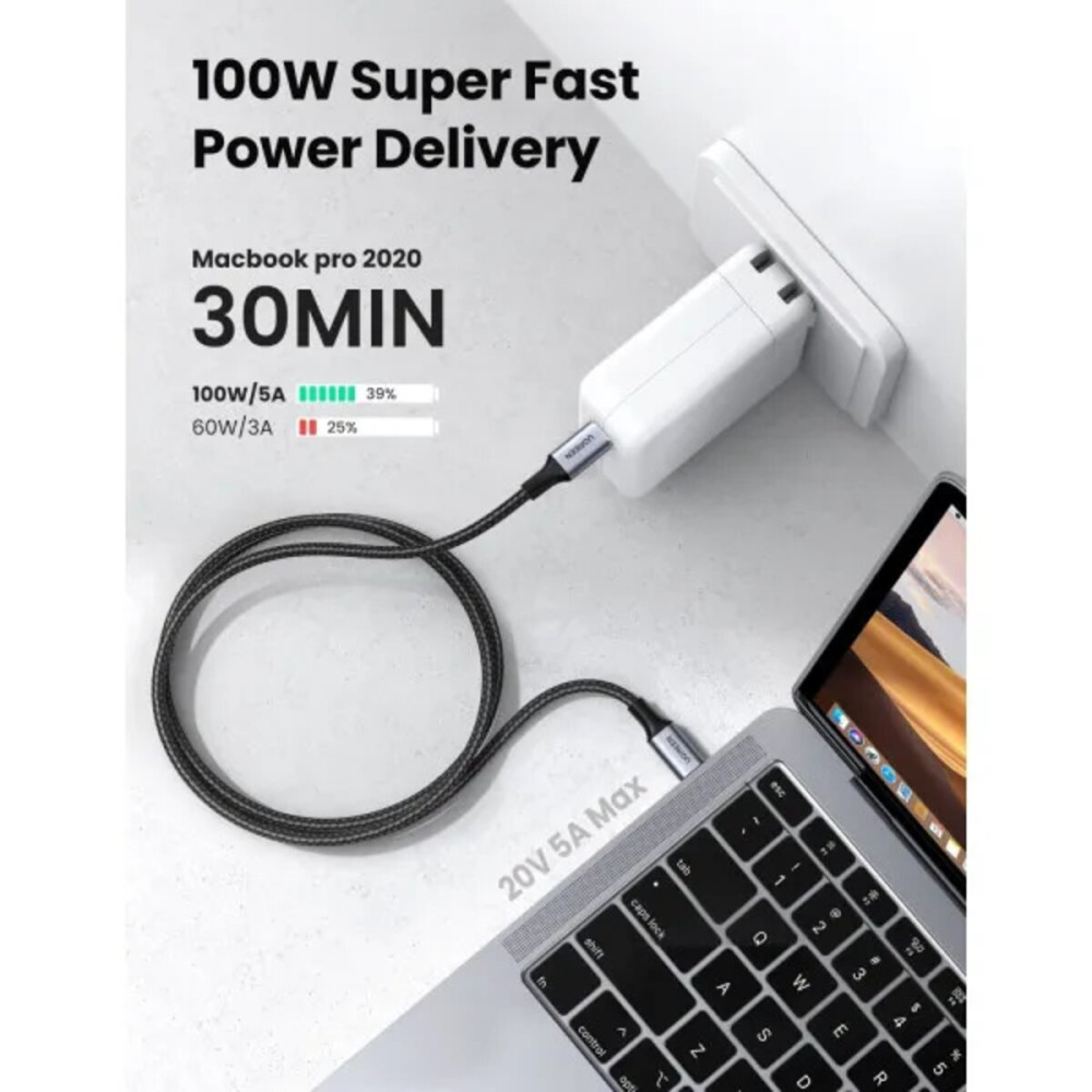 UGREEN US316 — надёжный и экономичный кабель USB-C to USB-C для ежедневной быстрой зарядки и синхронизации данных