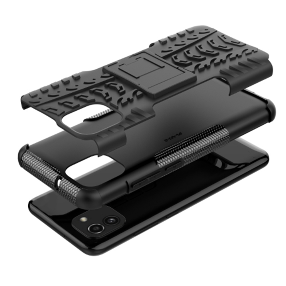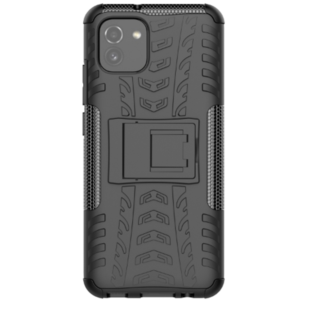 Одним из самых надежных чехлов бюджетной категории является бронированный. Стоит рассмотреть именно этот аксессуар для Samsung A03, ведь он обеспечит максимальную защиту вашему телефону. Изготовлен из поликарбоната и термополиуретану, прекрасно выполняет противоударную функцию.