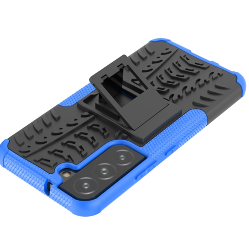 Внутренняя сторона гибкая, плотно прилегает к корпусу Samsung Galaxy S22 и изготовлена из ТПУ. Нужную жесткость чехлу оказывает внешняя твердая часть. Поверхность противоударной накладки очень приятная на ощупь и делает невозможным выпадение телефона из рук. Также для удобства вмонтирована раскладная ножка, которая быстро трансформируется в подставку.
