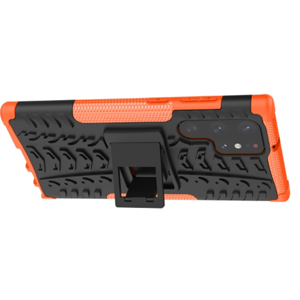 Внутренняя сторона гибкая, плотно прилегает к корпусу Samsung Galaxy S22 Ultra и изготовлена из ТПУ. Нужную жесткость чехлу оказывает внешняя твердая часть. Поверхность противоударной накладки очень приятная на ощупь и делает невозможным выпадение телефона из рук. Также для удобства вмонтирована раскладная ножка, которая быстро трансформируется в подставку.