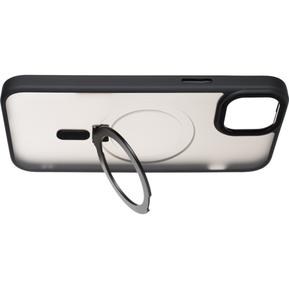 Чехол Bumper Case (MagSafe Stand) с функцией MagSafe и кольцом-подставкой является идеальным дополнением для владельцев iPhone, которые ищут надежную защиту и удобство в повседневном использовании своего устройства. Этот чехол сочетает высокое качество материалов, инновационную технологию MagSafe и дополнительный функционал в виде кольца-подставки.МатериалыВерхняя часть аксессуара изготовлена из пластика, что обеспечивает дополнительную защиту телефона от царапин и других повреждений.Кольцо-подставка – из металла. Это кольцо можно использовать в качестве стойкой и надежной подставки для телефона, что позволяет вам удобно просматривать видео или использовать телефон, не держа его в руках.Боковые части чехла изготовлены из силикона, благодаря чему обеспечивается дополнительная защита от сколов и царапин.Поддержка функции MagSafeПоддержка MagSafe позволяет легко и безопасно заряжать телефон от устройств, поддерживающих технологию MagSafe, не вынимая его из чехла. Такая функция обеспечивает простое и стабильное соединение с другими аксессуарами, такими как беспроводные зарядные устройства или док-станции. Вы сможете быстро и удобно заряжать свой телефон без необходимости подключения кабеля.Особенности чехла Bumper Case (MagSafe Stand) с функцией MagSafe и кольцом-подставкой:чехол обеспечивает надежную защиту от царапин, ударов и сколов, сохраняя при этом стильный внешний вид вашего iPhone;поддержка функции MagSafe обеспечивает быструю и безопасную зарядку для телефона;чехол имеет кольцо-подставку на задней панели, которое можно использовать в качестве подставки для телефона.В общем, Bumper Case (MagSafe Stand) – это идеальный выбор для тех, кто ищет надежную и удобную защиту для своего iPhone с дополнительными полезными функциями.