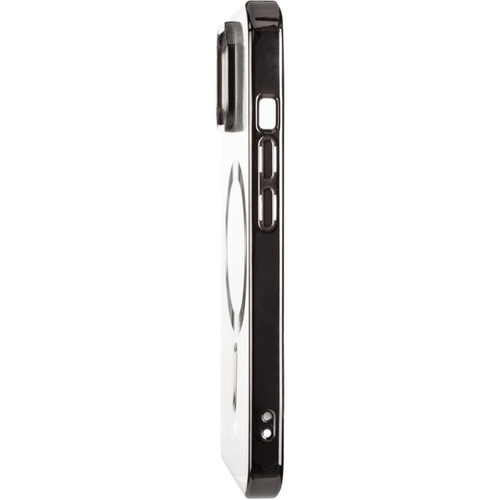Чехол Chrome Frame Case (MagSafe) – это аксессуар, сочетающий в себе стиль, функциональность и надежную защиту для вашего смартфона.МатериалыChrome Frame Case (MagSafe) изготовлен из силикона, способного эффективно защищать телефон амортизируя удары. Задняя крышка из прозрачного силикона позволяет выделять оригинальный дизайн смартфона.ДизайнЭтот чехол привлекает своим видом благодаря акценту на боковые цветные хромированные грани, которые придают вашему смартфону изысканности и оригинальности. Вы можете выбрать свой любимый цвет, который лучше всего соответствует вашему стилю и предпочтениям.Надежная защитаЧехол Chrome Frame Case (MagSafe) оснащен выступающими рамками вокруг камер, гарантирующими их безопасность при использовании телефона на горизонтальных поверхностях. Это защищает важные функциональные элементы вашего смартфона от царапин и повреждений.Боковые клавиши телефона защищены благодаря кнопкам, дублирующим их положение. Это означает, что вы можете легко использовать устройство, не испытывая никаких препятствий или рисков повреждения боковых элементов.Поддержка функции MagSafeЧехол поддерживает технологию MagSafe, позволяющую быстро и комфортно заряжать телефон. Магнитный крепеж MagSafe надежно фиксирует зарядное устройство и другие аксессуары, что обеспечивает простое и стабильное соединение с ними, например беспроводными зарядными устройствами или док-станциями. Вы сможете быстро и удобно заряжать свой смартфон без необходимости подключения кабеля.Чехол Chrome Frame Case (MagSafe) – это стильный, функциональный и надежный аксессуар, который придаст вашему смартфону яркости и защиты. Этот чехол обеспечивает легкий доступ ко всем функциональным кнопкам и разъемам телефона.
