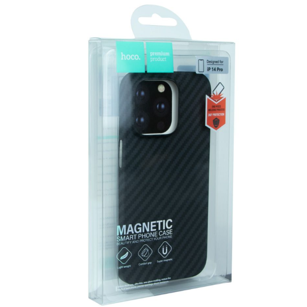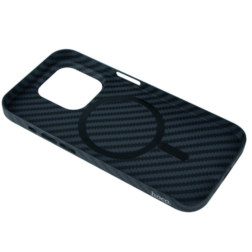 Чехол Hoco ultra-thin magnetic protective case – это сверхтонкая панель-накладка, разработанная для обеспечения усиленной защиты смартфона и его комфортной повседневной эксплуатации. Аксессуар реализован в стильном, уникальном дизайне, который привлекает двухцветным узором текстуры переплетения карбонового волокна. Его толщина равна всего 0.6мм, что в сочетании с приятными на ощупь ребрами и оставляющей на себе следов от пальцев поверхностью, благодаря специальному напылению, сделают повседневную эксплуатацию гаджета максимально комфортной. Чехол обладает надежной композитной структурой, в основе которой лежит ударопрочный поликарбонат, что гарантирует длительный срок службы и усиленную защиту корпуса смартфона от царапин, сколов и потертостей даже при падении. Конструкция аксессуара дополнена точными вырезами для функциональных элементов смартфона, поднятая на 0.3мм над модулем камеры окантовкой, магнитными деталями толщиной 0.3мм, обеспечивающими полноценную поддержку зарядки MagSafe.