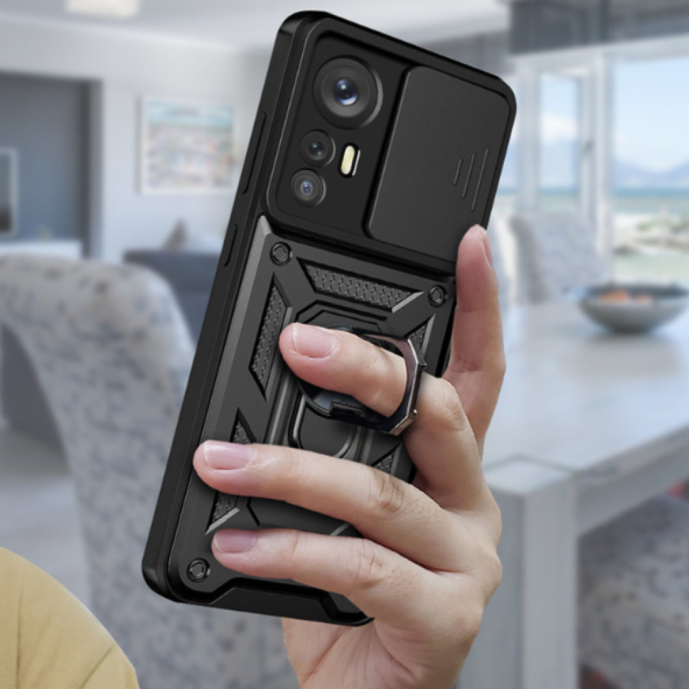 Ricco Camera Sliding - это стильный противоударный чехол с многофункциональным кольцом держателем.