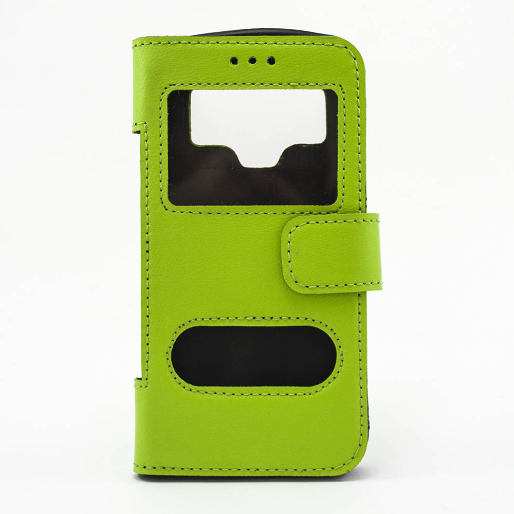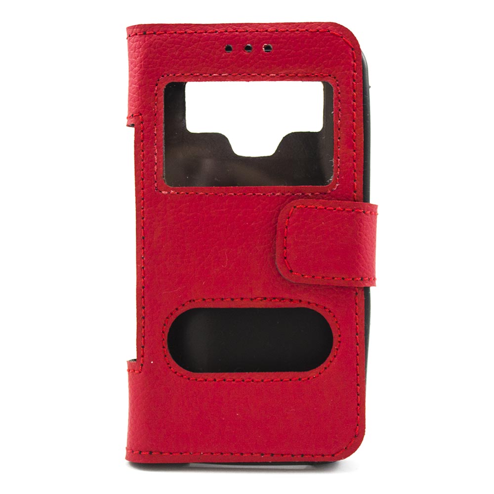 Чехол изготовлен из качественного кожаного заменителя. Два окошка в верхней и нижней части чехла позволяют, не открывая его, просмотреть оповещения, а также принять звонки.