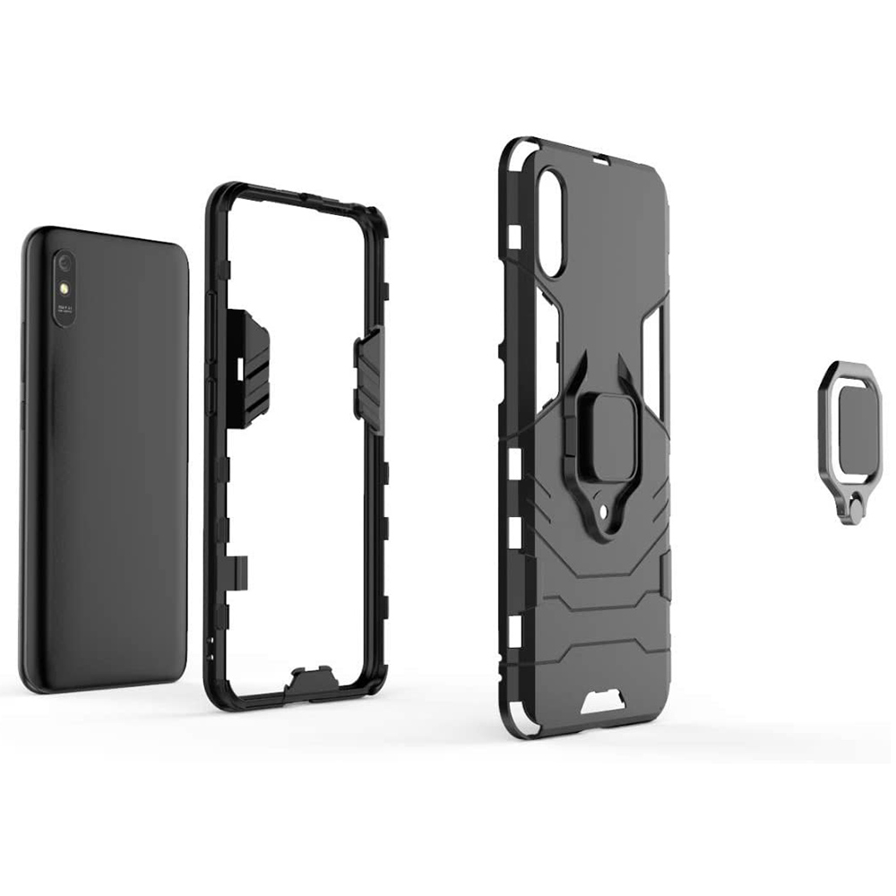 Особенностью Black Panther Armor является металлическое кольцо и магнитная пластина. Кольцо можно использовать как попсокет и как подставку. Магнитная пластина прекрасно подойдет водителям, так как с ее помощью Сяомей Редми 9A можно надежно зафиксировать на магнитном холдере.