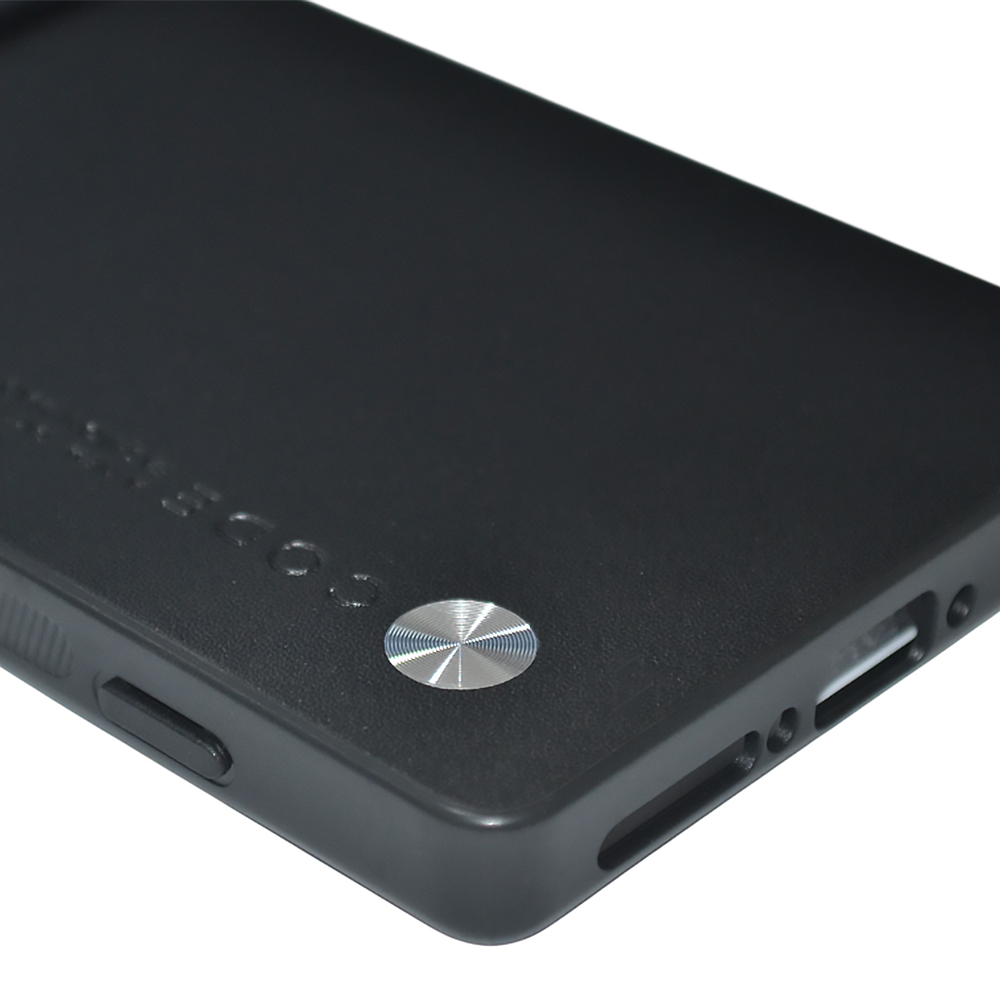 Поверхность чехла украшена мягкой эко-кожей, приятной на ощупь и устойчивой к скольжению в руках.