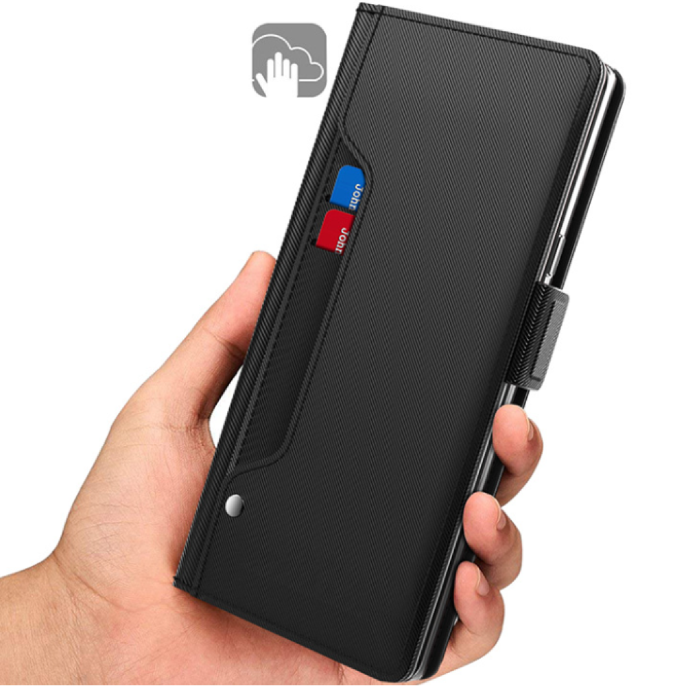 Дополнительно производитель добавил кармашек для фотографии и купюр. Также особенностями чехла книги является встроено зеркало и вкладка для банковских карт.