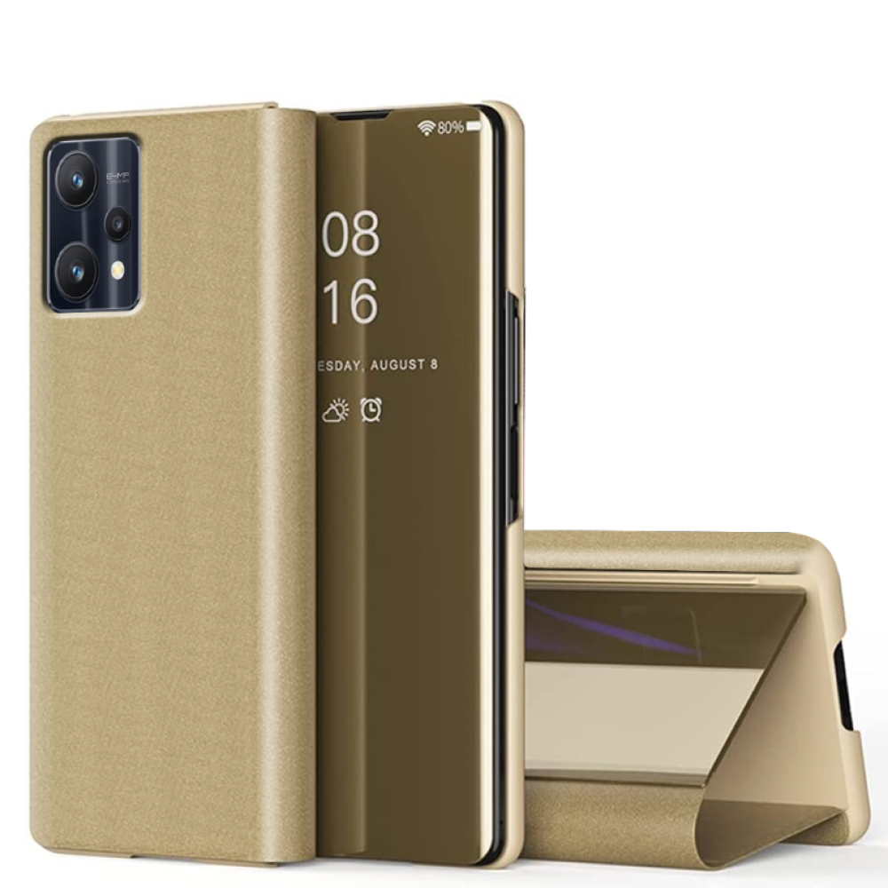 Чехол книжка зеркало Clear View для Realme 9 Pro золотой
