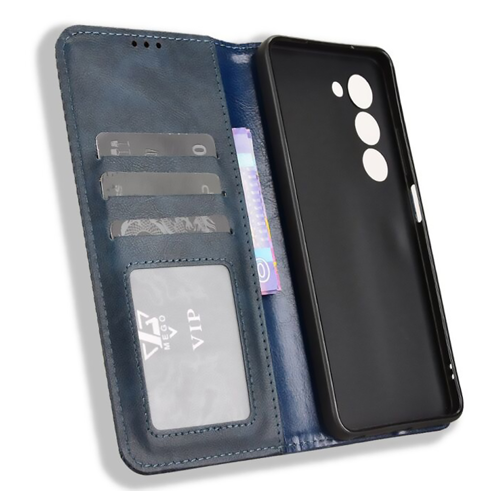 На внутренней стороне крышки находятся отделениями для банковских карт, документов или визиток, включая прозрачный карман, а также отдельный карман для купюр. Магнитный крепеж надежно удерживает чехол в закрытом состоянии, а специальные отверстия под динамик позволяют отвечать на звонки, не открывая крышку.