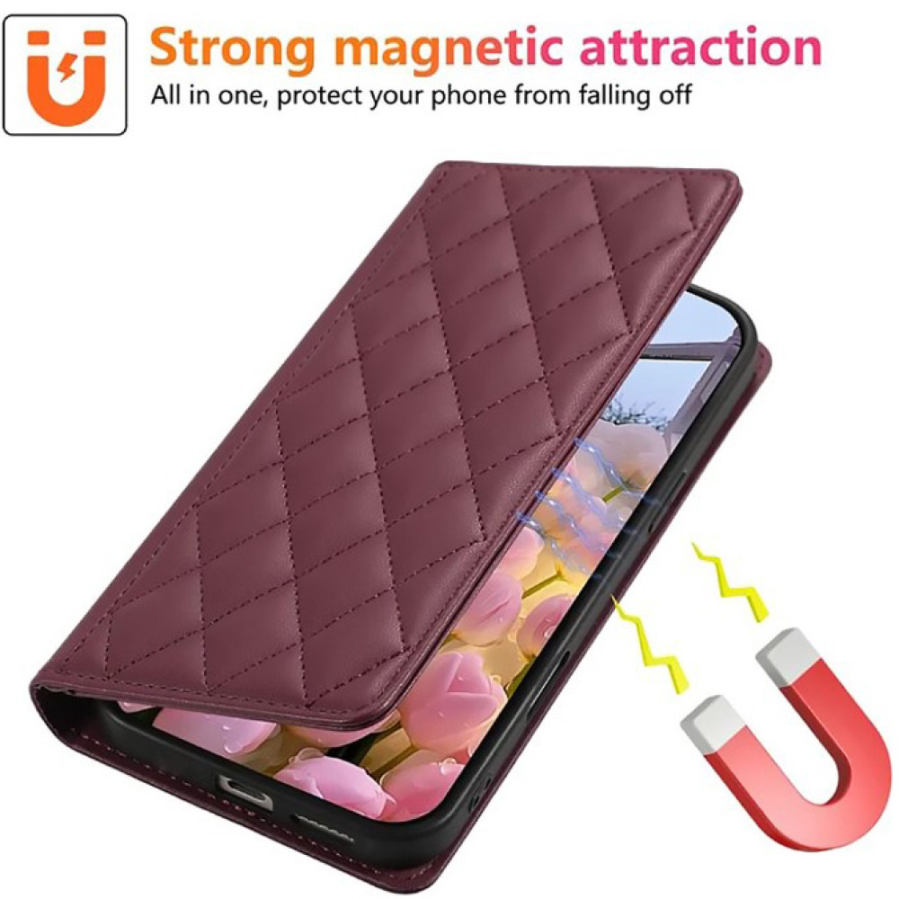 Дизайн выполнен в виде объёмных ромбов, что добавляет чехлу элегантности и утончённости. Благодаря магнитным вставкам в верхней крышке вы можете не переживать за случайное открытие — она надёжно фиксируется при закрытии.