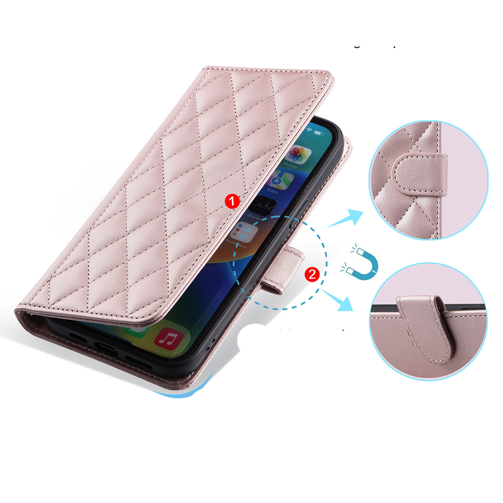Этот стильный и практичный чехол для смартфона изготовлен из эко-кожи и TPU, которые обеспечивают надежную защиту вашего Samsung Galaxy A06 от царапин, ушибов и других повреждений. Дизайн выполнен в виде выбитых ромбов, придающих чехлу элегантный вид. Кроме того, чехол оснащен надежной магнитной защелкой, которая надежно фиксирует крышку, и имеет карманчики для карточек на внутренней стороне верхней крышки. Смартфон вставляется в накладку из мягкого TPU, что обеспечивает удобство использования и дополнительную защиту.