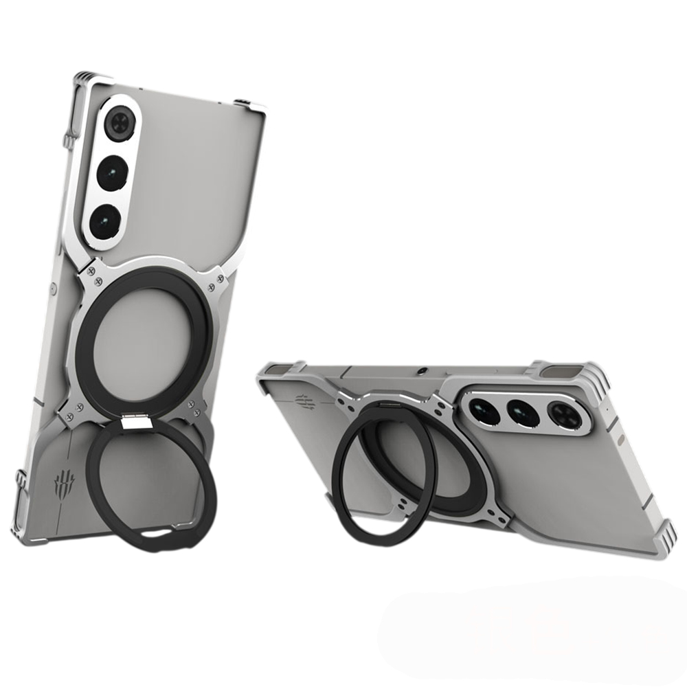 Чехол Metal Bamper для ZTE nubia RedMagic 10 Air с кольцом – подставкой и защитной рамкой на камеру серебристый