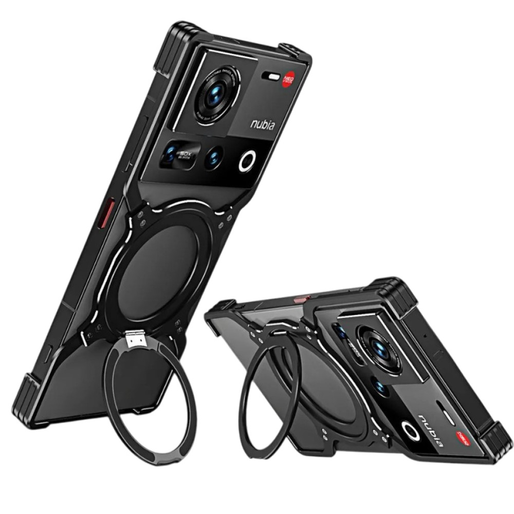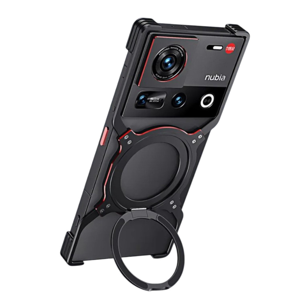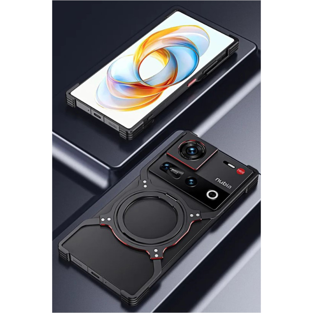Чехол Metal Bamper для ZTE nubia Z70 Ultra / Z70S Ultra с кольцом – подставкой и защитной рамкой на камеру черно-красный