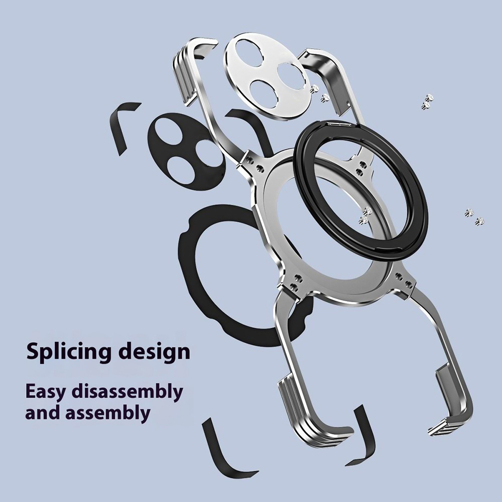 Магнитное кольцо вращается на 360° и может использоваться как подставка или держатель. Ещё одной особенностью является наличие алюминиевой рамки для защиты камеры, которая фиксируется поверх блока объективов, предотвращая появление царапин и попадание пыли.