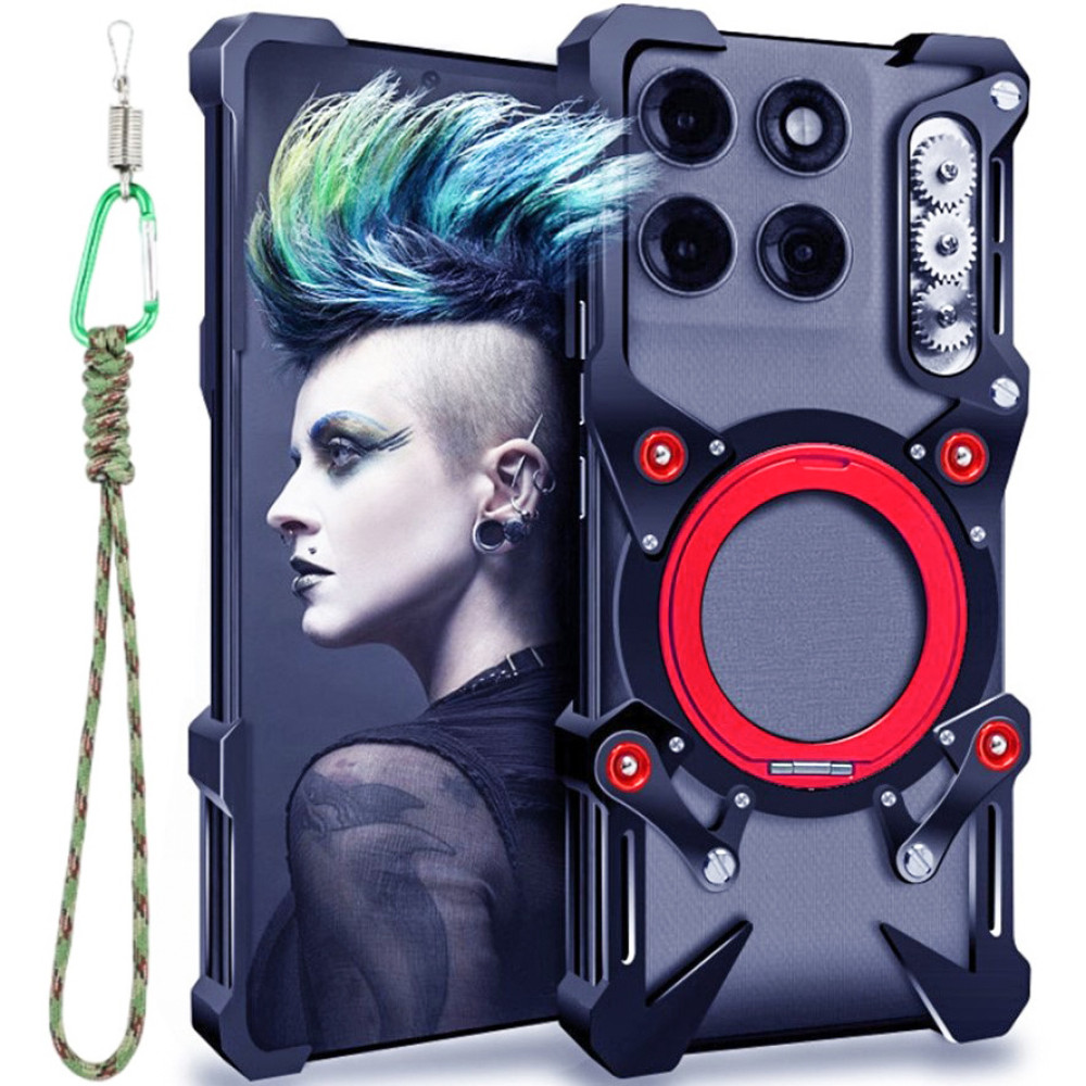 Чехол Metal Cyber Bumper для Motorola Edge 60 Fusion с кольцом и шнурком-держателем – это надежная защита в стильном креативном дизайне.