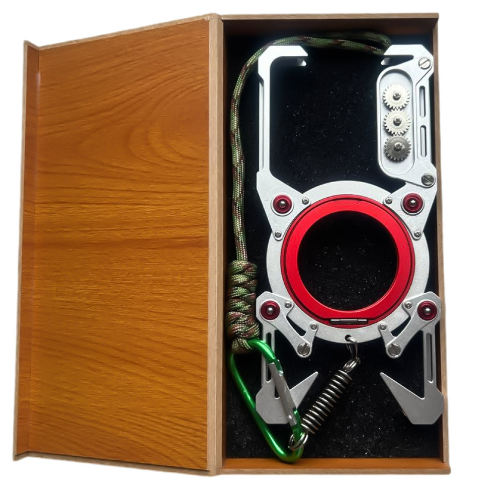 Изготовленный из металла, чехол обеспечивает повышенную прочность и устойчивость к ударам, падениям и царапинам. Его кибер-дизайн с винтовыми элементами и геометрическими линиями придает смартфону уникальный и технологичный вид.