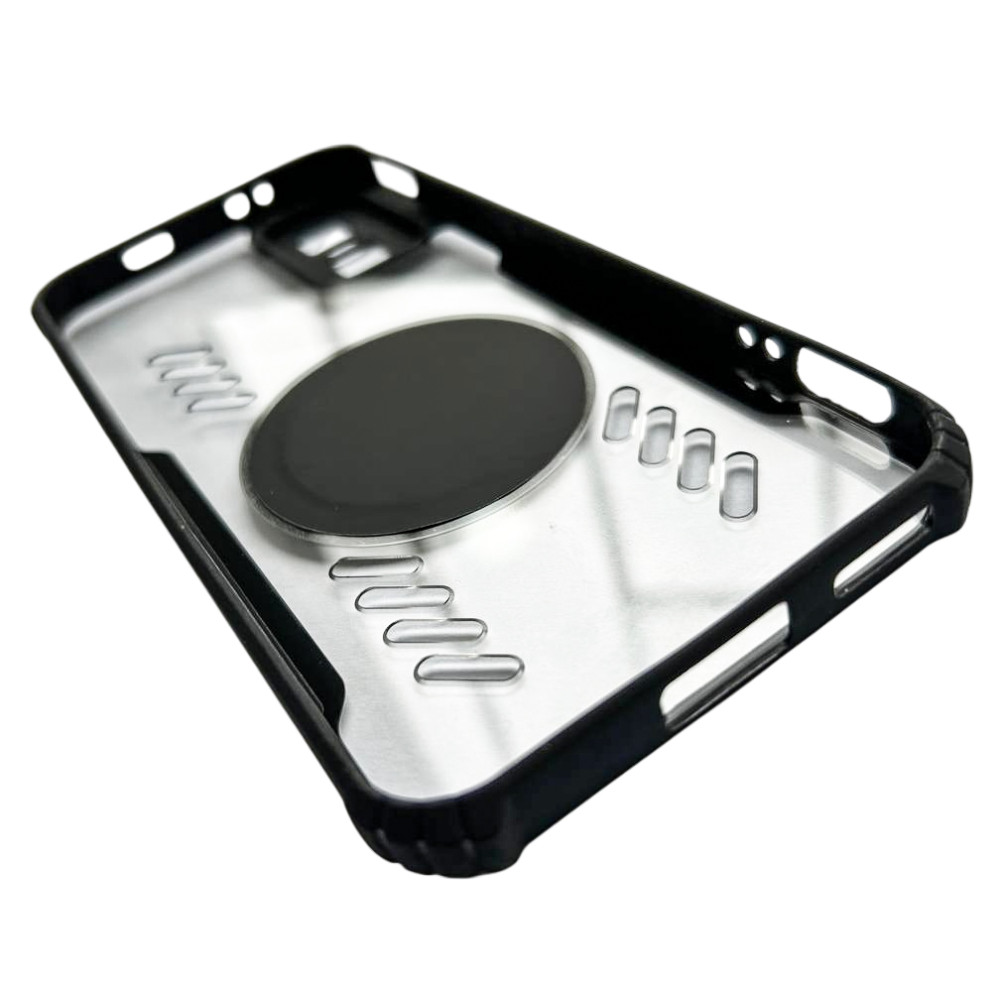 На чехле присутствуют специальние отворы для отвода теплого воздуха и вентиляции телефона, и так же магнитное кольцо для фиксации смартфона на магнитный холдер или в другое место.