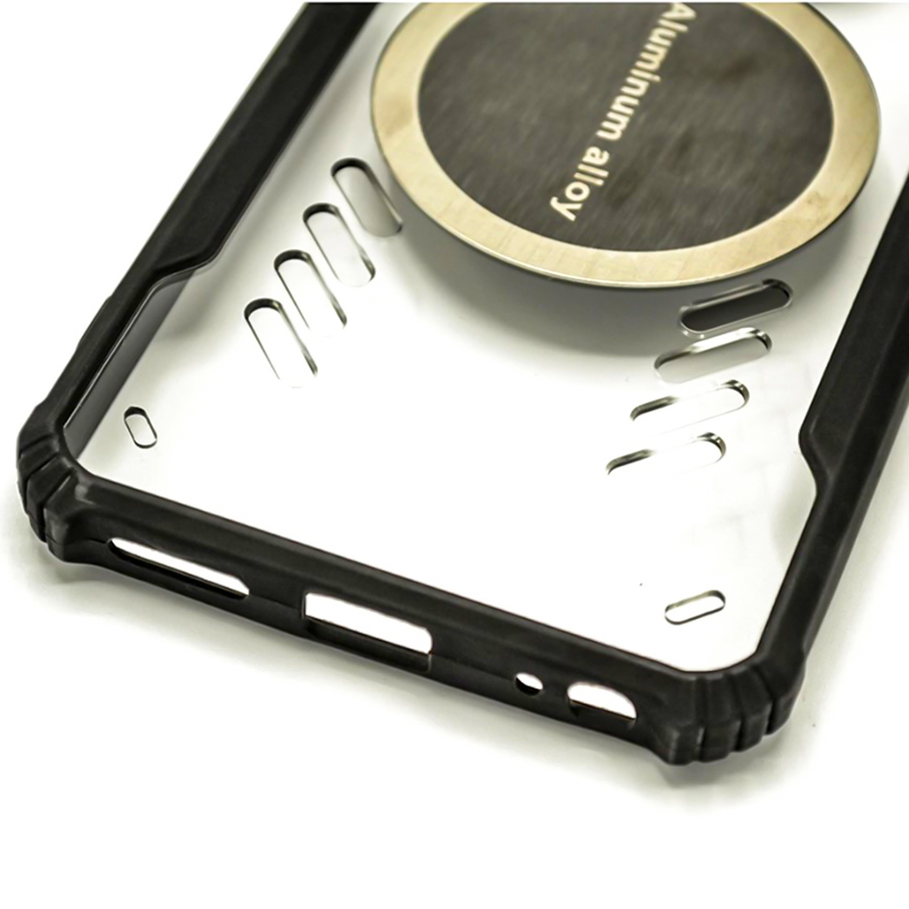 На чехле присутствуют специальние отворы для отвода теплого воздуха и вентиляции телефона, и так же магнитное кольцо для фиксации смартфона на магнитный холдер или в другое место.
